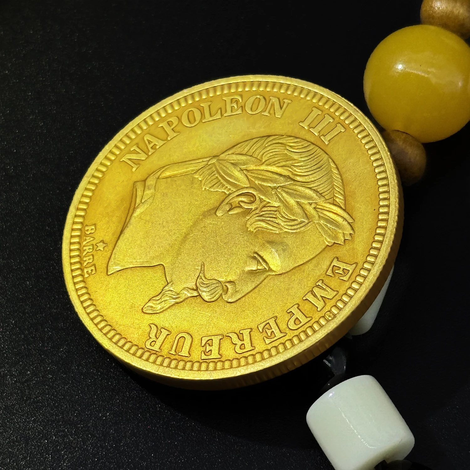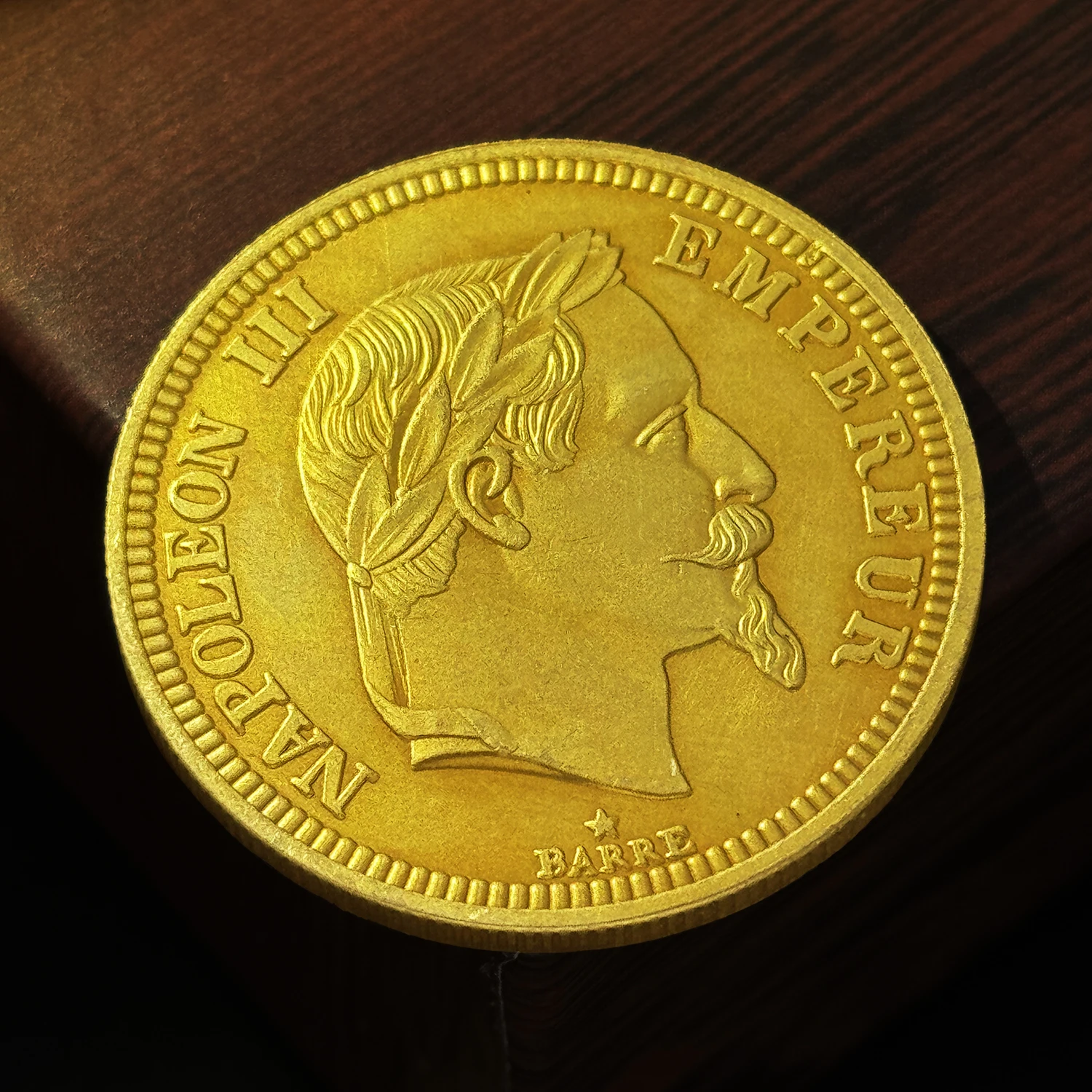 - Inscriptions read “NAPOLEON III” at the top, “EMPEREUR” on the right, and a small star below the profile, reflecting historically inspired patriotic motifs and regal symbolism.