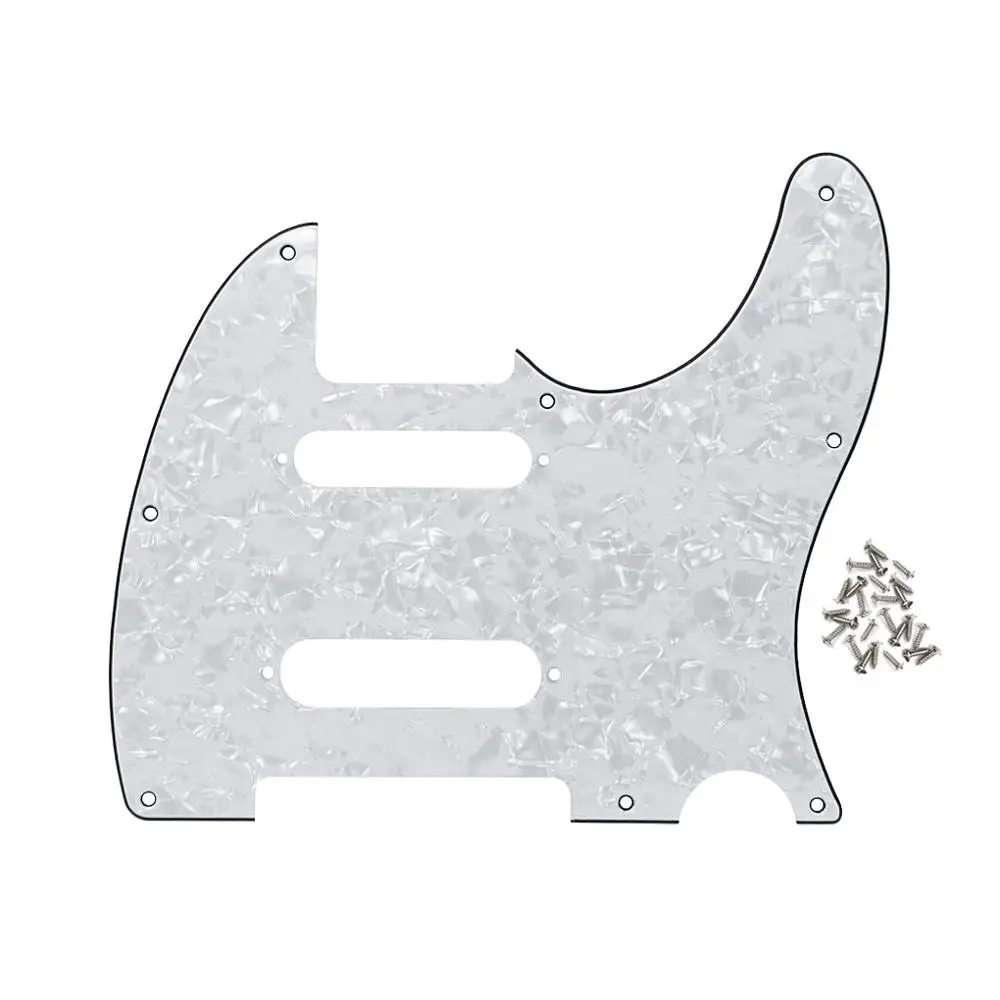 Imagine upgrading your guitar with this sleek, black, creamy, or pearly pickguard, designed specifically for standard Fender-style Nashville TL guitars. Crafted from durable, environmentally friendly PVC and celluloid layers, this pickguard offers a refined and modern look with its glossy, reflective finish. Its irregular, asymmetrical shape comfortably fits your guitar’s body, accentuated by smooth, rounded edges and precise cutouts for pickups and controls. The 8-hole mounting pattern, complete with countersunk screw holes, ensures easy installation and a seamless, professional appearance. Whether you prefer a bold black, classic cream, or elegant white pearl, this pickguard enhances your guitar’s aesthetics without sacrificing functionality. Transform your instrument with quality and style, and enjoy a personalized touch every time you play.