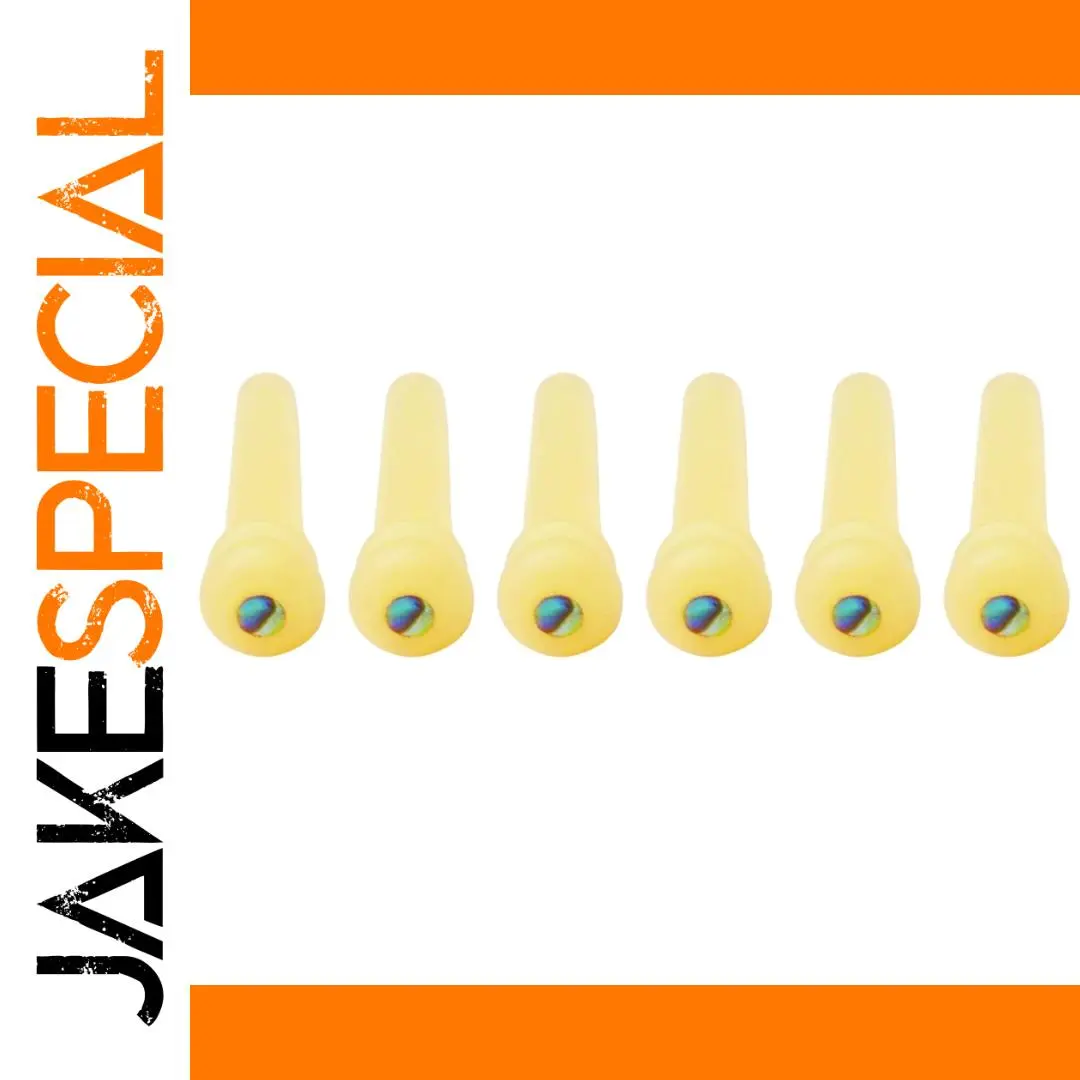 Experience the perfect blend of durability and elegance with this set of 30 natural unbleached cow bone guitar bridge pins. Crafted precisely at 28mm in length with a smooth, slightly matte finish, these pins are designed to enhance both your guitar’s aesthetic and sound quality. The yellow hue of the bone material offers a warm, organic appearance, complemented by a small iridescent disc embedded in each head that shifts hues of blue, green, and purple, adding a subtle decorative touch. The pins feature a gentle 3° taper, with a head diameter of 8mm and a neck diameter of 5.33mm, ensuring seamless fit and stability in your guitar's bridge hole. Handcrafted for superior craftsmanship, these pins are ideal for customizing or replacing your current set with reliable, natural materials.