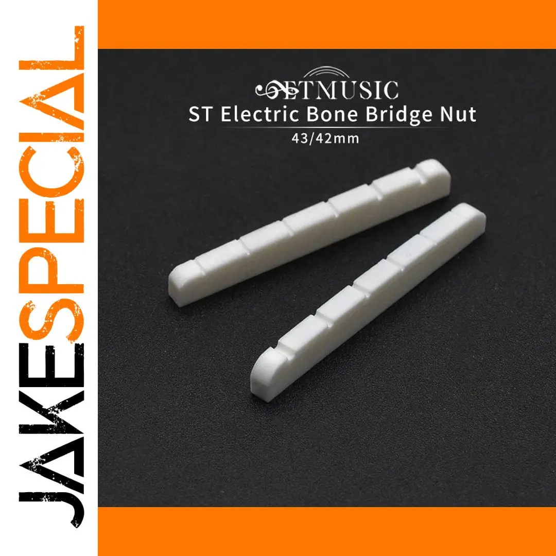 Enhance your guitar's tone with this set of high-quality bone bridge nuts, designed specifically for 6-string electric guitars. Crafted from durable, natural cow bone, these nuts offer superior tonal clarity, sustain, and stability. Their smooth surface reveals subtle grain patterns and a creamy white hue, adding an organic, rustic aesthetic to your instrument. Available in sizes of 42mm and 43mm, with precisely carved grooves for even string spacing, these nuts are perfect for upgrading or replacing worn-out components. They are lightweight, compact, and built to last, ensuring your guitar maintains excellent sound performance and playability. Whether you are customizing your guitar or improving its sound quality, these nuts are a reliable choice for discerning guitar enthusiasts.