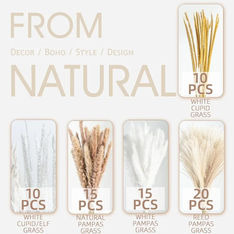 Imagine decorating your space with this beautiful, natural pampas grass bouquet—adding warmth, texture, and style effortlessly. Whether for a wedding, party, or everyday decor, this collection brings a touch of rustic elegance. With its long-lasting quality and eco-friendly sourcing, you can enjoy its natural beauty for years. Visualize these soft, airy stems creating a calming atmosphere in your living room or a stunning centerpiece at your next celebration. Elevate your decor now with this versatile, sustainable collection. Experience the joy of transforming your space into a cozy, stylish haven today.