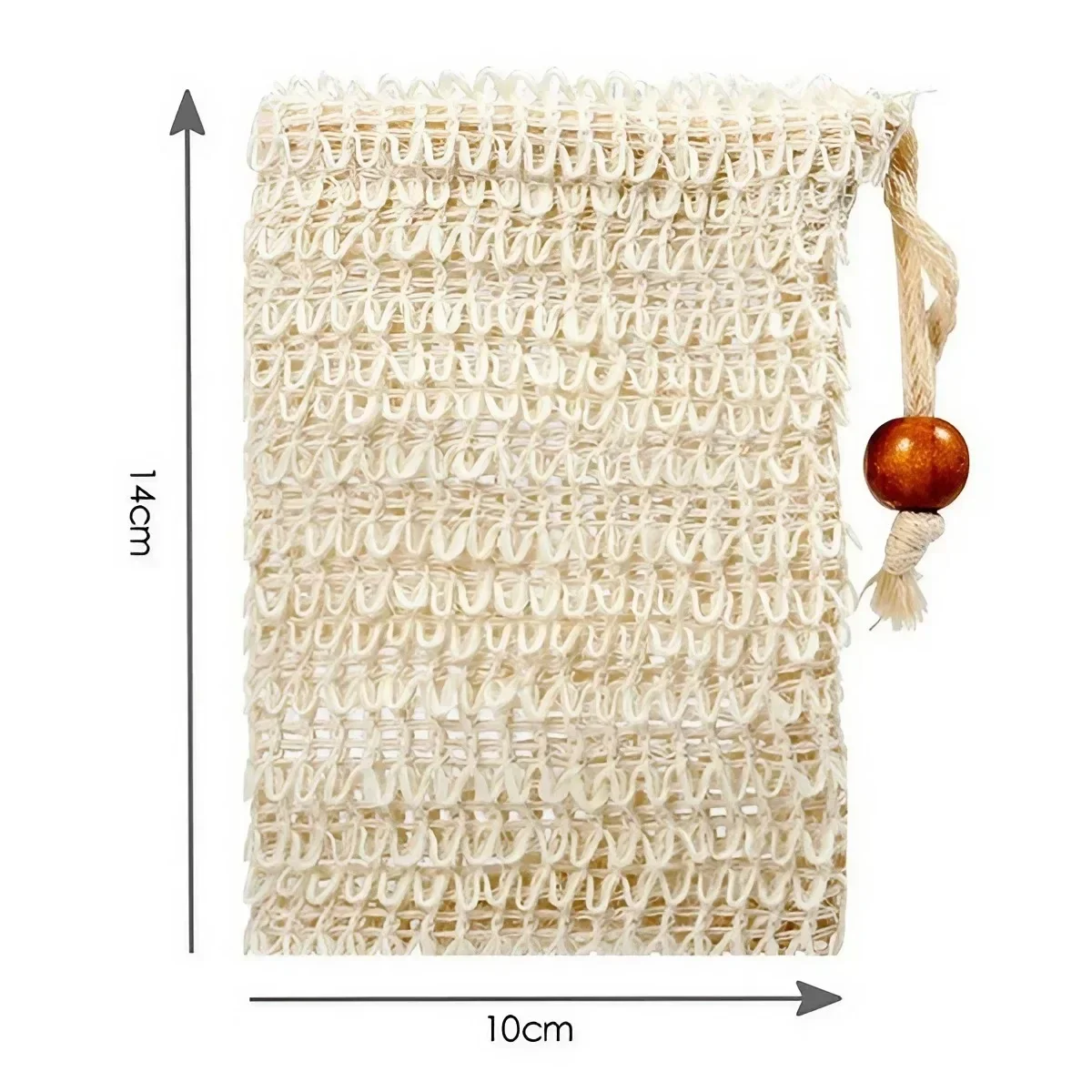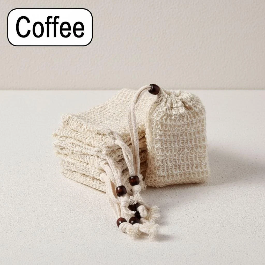 Enhance your bathing routine with this natural sisal soap bag measuring 14 cm by 10 cm, crafted to hold most soap sizes while providing gentle exfoliation and rich lather. Its textured mesh design offers an organic feel, complemented by a secure drawstring closure with a small wooden bead for ease of use and hanging. Available in white and coffee, this eco-friendly, chemical-free accessory is perfect for bathtubs, showers, and household cleaning, helping to extend soap life and deliver a soothing, tactile experience. Simple to use and maintain, it seamlessly combines functionality with rustic charm to elevate your self-care regimen.