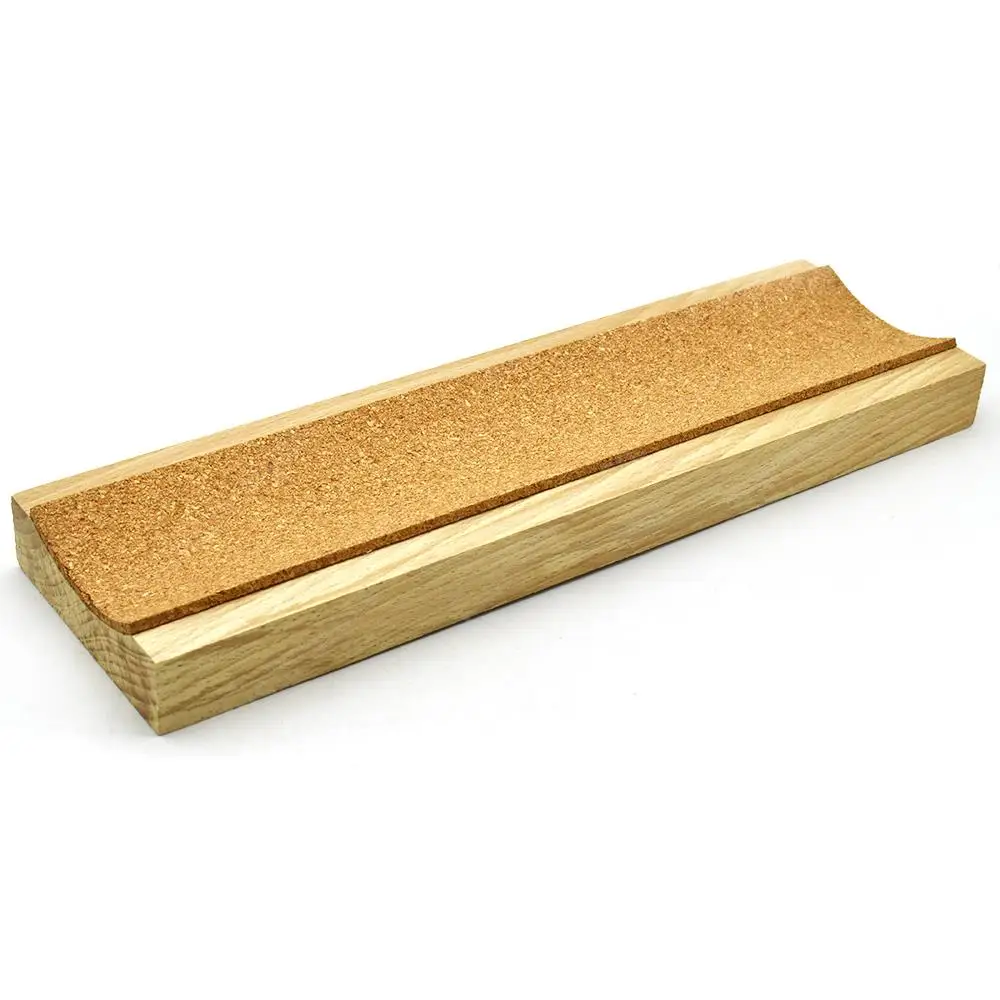 Experience effortless instrument maintenance with this elegantly crafted, natural wooden guitar neck rest. Designed to support guitars, basses, ukuleles, mandolins, and banjos, its minimalist rectangular shape with smooth edges offers stability and ease during fretwork and setup. The slightly raised, textured center, likely cork or a similar material, provides a secure grip, preventing slipping while working on your instrument. Its light, untreated finish highlights organic wood grain, giving it a simple yet refined aesthetic. Compact and durable, this support is perfect for repair shops and dedicated musicians alike. Visualize yourself confidently adjusting or repairing your instrument, thanks to this reliable, versatile tool that combines craftsmanship and practicality seamlessly.