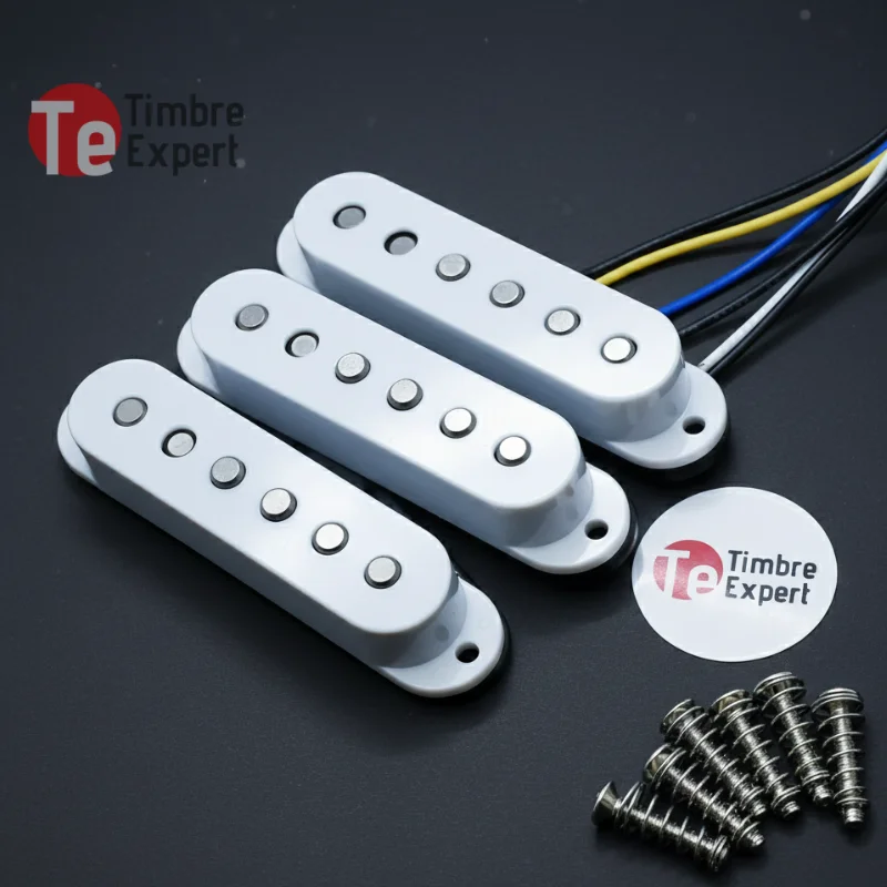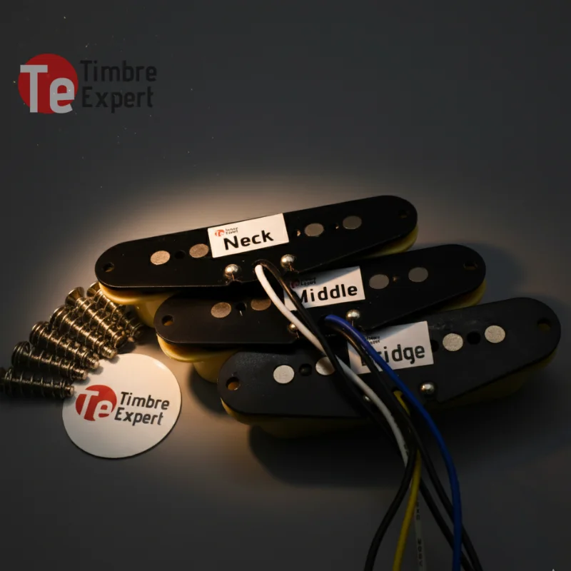 Transform your guitar’s sound with this versatile set of three single-coil pickups featuring a modern aesthetic and technical excellence. The set includes vintage-style neck and middle pickups with a 5.6KΩ inductance for sparkling, bell-like tones, complemented by a overwound bridge pickup at 6.9KΩ with a 3.0H inductance for full, punchy sound capable of driving distortion. Wound with high-quality German Electrisola Polysol copper wire and equipped with durable polycarbonate bobbins, these pickups feature Alnico V magnets with staggered pole pieces for balanced output, focused bass, and dynamic response. The reverse-wound middle pickup ensures hum cancellation, making this set perfect for musicians seeking a sleek, modern look with exceptional tone versatility.