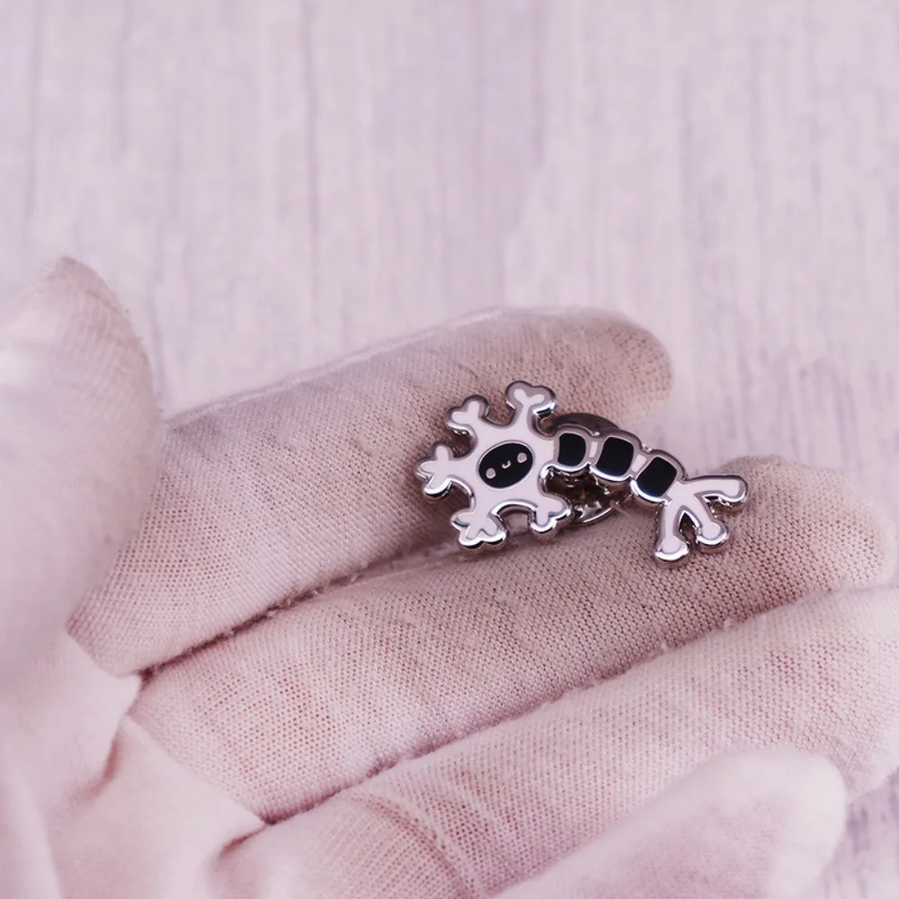 The 1pc Interesting Brain Science Cartoon Neuron Brooch Badge is crafted from durable alloy with a shiny silver finish, featuring a quirky neuron design. The slightly rounded central body includes a black circular area and two small round features that give it a playful expression. Extending branches mimic dendrites, enhancing its whimsical charm. This unisex accessory is perfect for jackets, backpacks, hats, or DIY clothing projects. Size is as shown in the figure, with a possible deviation of 1-3mm due to measurement variations. Ideal as a gift for healthcare professionals or science enthusiasts.