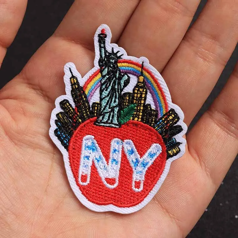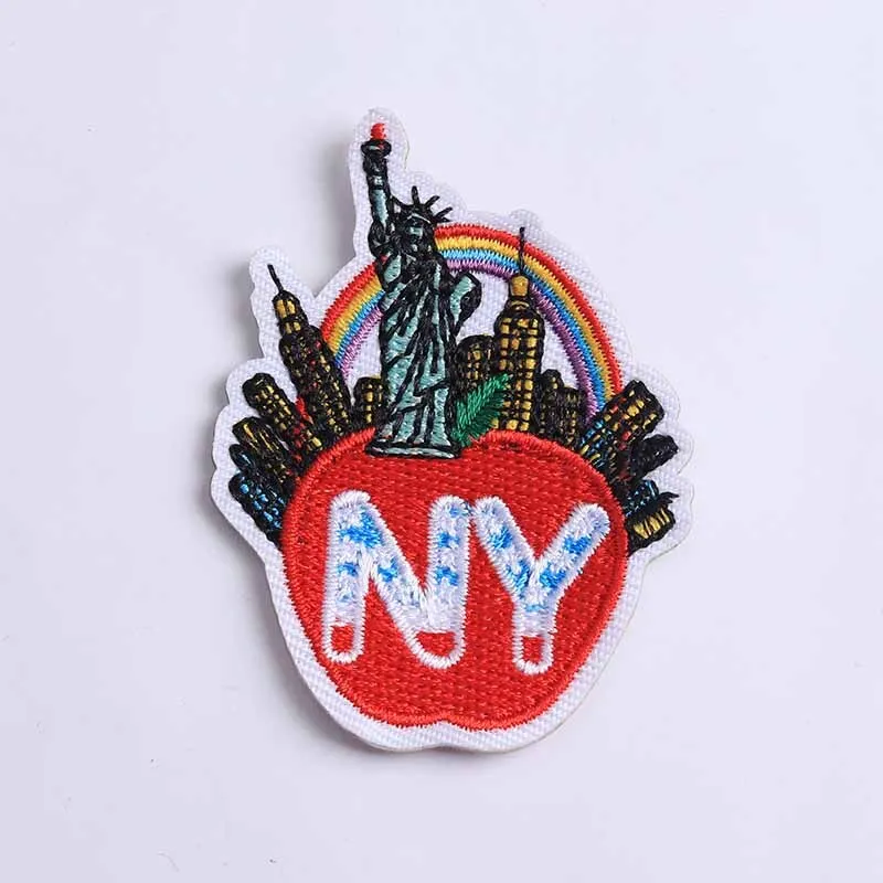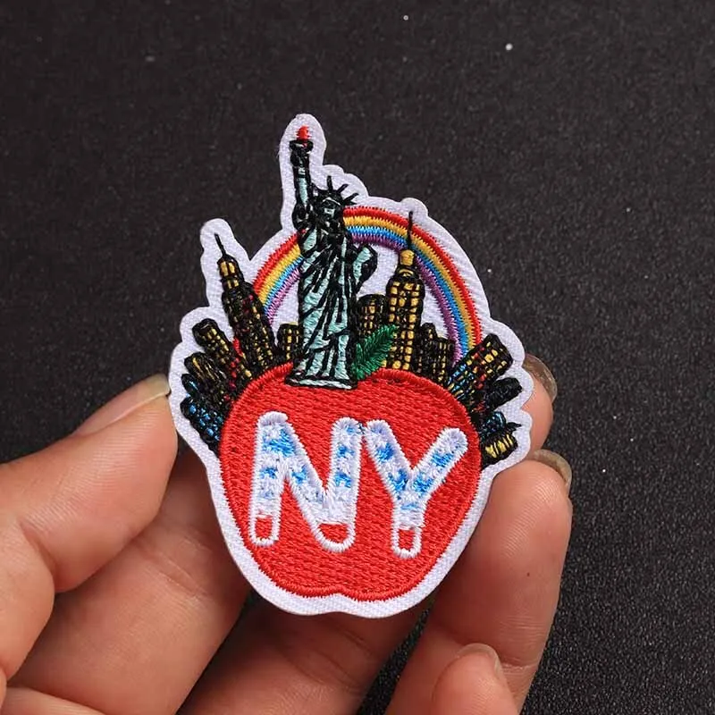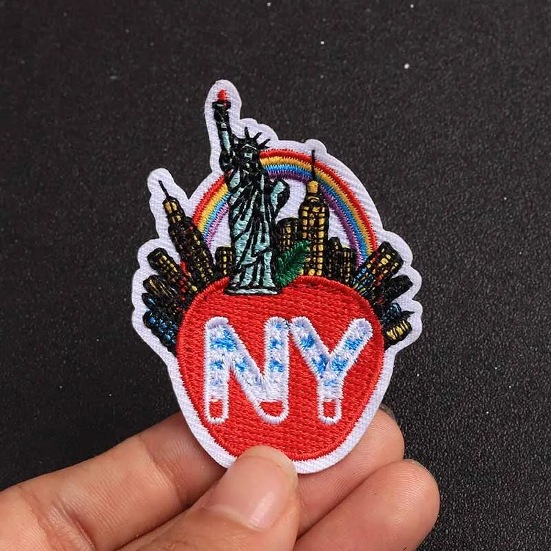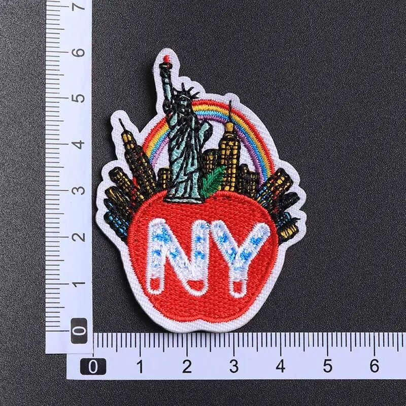 Transform your wardrobe with this set of 5 vibrant New York architecture patches, each measuring 6cm x 4.5cm. Crafted from eco-friendly non-woven fabric, these iron-on patches feature a colorful design with the Statue of Liberty, a red apple, iconic skyscrapers, and a cheerful rainbow, all presented in a textured, 3D style. Perfect for personalizing T-shirts, tops, pants, coats, bags, and curtains, they can be easily applied using a household iron or heat press machine. Unleash your creativity with these handmade patches and bring a touch of New York charm to your clothing and accessories.