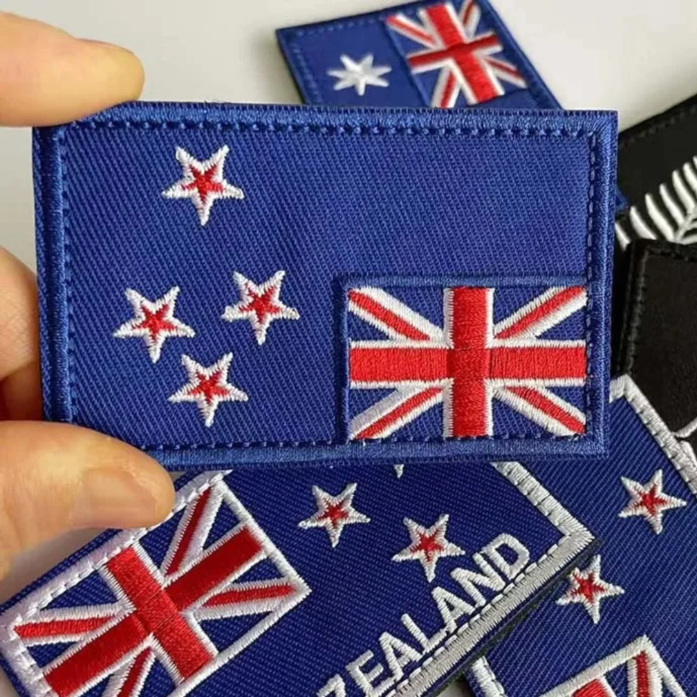 - The detailed embroidery depicts the New Zealand flag with crisp colors and sharp lines, including the Union Jack and Southern Cross stars.