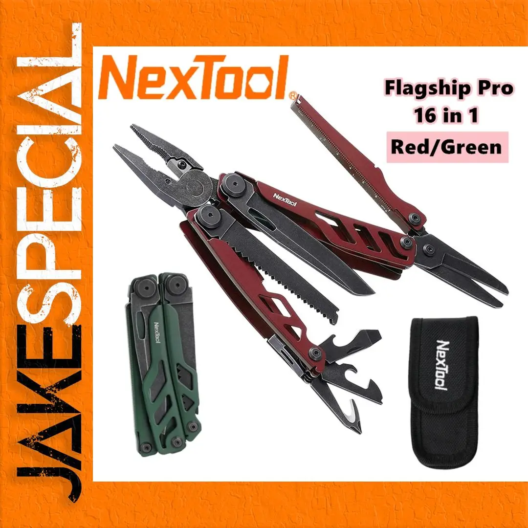 Experience the perfect blend of durability and versatility with this this NexTool Flagship Pro 16-in-1 multi-tool. Crafted from premium 30Cr13 stainless steel, it offers a robust main body and pliers, complemented by a sharp folding blade made from 50Cr15MoV stainless steel. Its lightweight, compact foldable design measures just 110mm x 40mm x 21.5mm and weighs around 245 grams, making it ideal for everyday carry, camping, or emergency situations. The anodized aluminum handles in bold red, green, black, or blue add vibrant visual appeal. Open this versatile multi-tool to reveal multiple functions: needle nose pliers, scissors, saw, screwdrivers, line cutter, bottle opener, and more—each engineered to provide precise performance when you need it most. Its sleek, modern style combines aesthetics with practical utility.