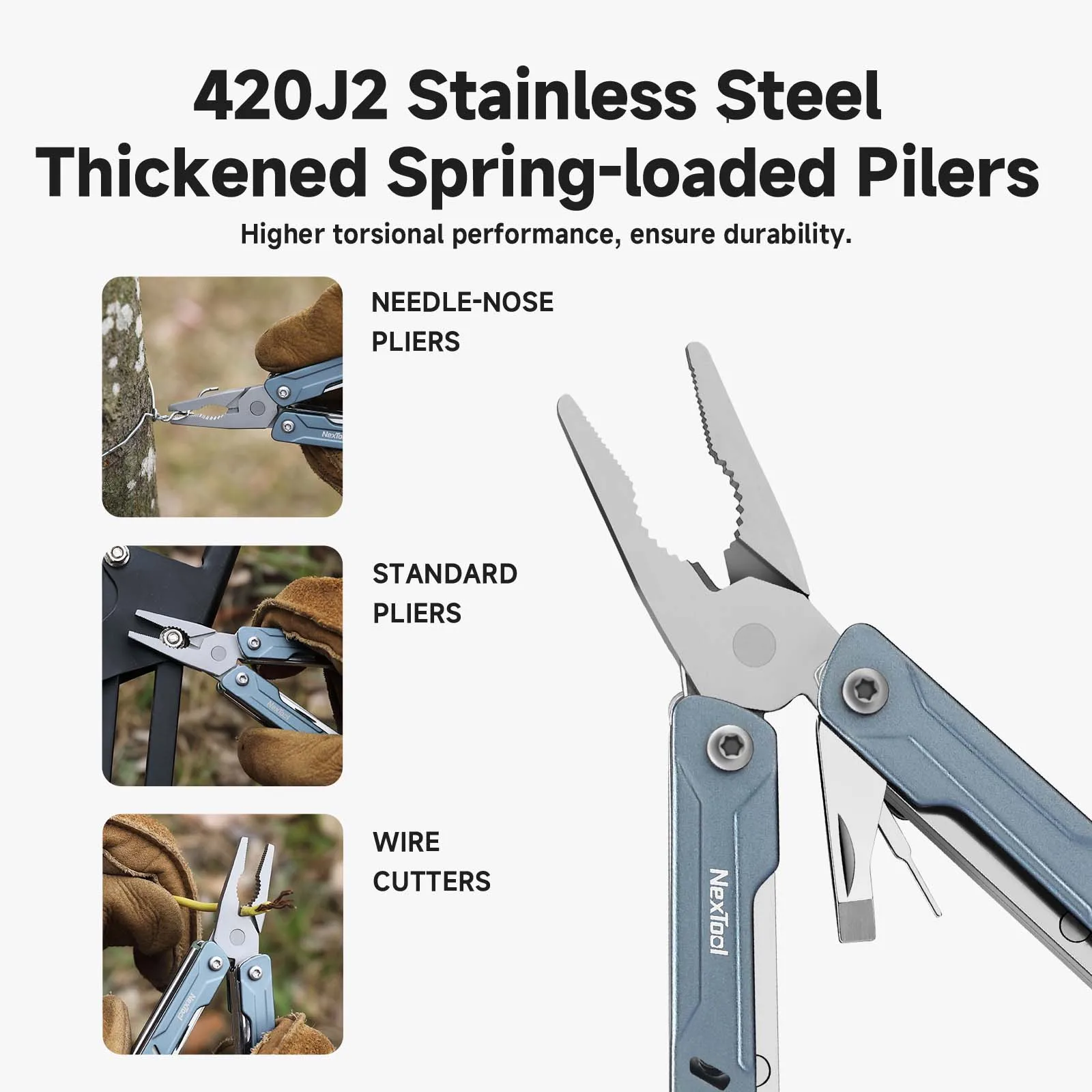 Experience the perfect blend of style, durability, and versatility with this this NexTool Mini Sailor Pliers S11. Designed for outdoor enthusiasts and everyday adventurers, this compact tool fits comfortably in your hand while offering 12 essential functions. Its sleek metallic silver finish combined with a matte light blue handle adds a modern touch to your gear. Built from high-quality stainless steel (420J2 and 420J1), it promises long-lasting resilience. Whether you need to tighten screws, cut wires, open bottles, or clip paper, this multi-tool is your reliable companion. Its lightweight, streamlined design makes it easy to carry in pockets, bags, or on keychains, perfect for camping, hiking, or daily tasks. Imagine the confidence of having a versatile multi-tool always at your fingertips.