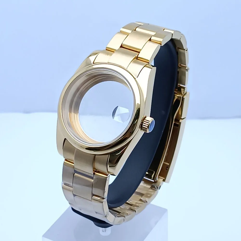 Experience the perfect combination of sophistication and craftsmanship with this this NH Series 36mm watch case. Made from polished stainless steel, it boasts a sleek, shiny finish that enhances any high-end men's wristwatch. Its 36mm diameter and 12mm thickness create a balanced, robust profile. The case supports a dial size of 28.5 to 29mm, ensuring a precise fit. The fixed bezel features a textured, gear-like ridged design, adding a touch of industrial elegance. The flat sapphire glass crystal offers outstanding clarity and scratch resistance, while the multi-link stainless steel bracelet provides a luxurious, flexible feel. Supported by multiple color variants, this case is ideal for custom branding, making it a versatile choice for watch enthusiasts seeking style and durability.