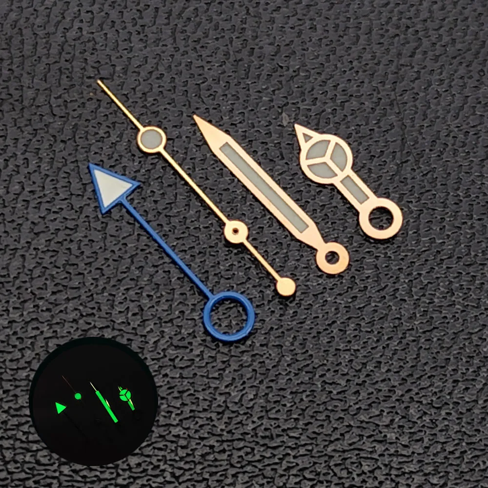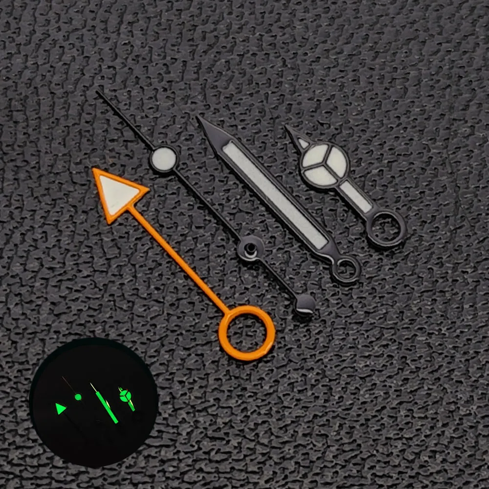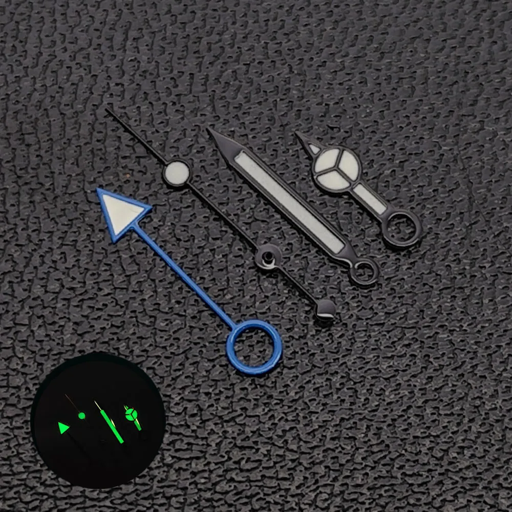 Upgrade your NH34 movement watch with this premium set of luminous watch hands, measuring 8 x 12 x 12.5 mm, crafted from durable stainless steel. The set includes hour, minute, and second hands, all coated with vibrant green and blue-green luminous material for excellent visibility in low light. Available in a variety of stylish color options such as silver with blue, green, red, orange, or gold accents, as well as rose, black, black-orange, black-red, golden-blue, golden-orange, and golden-red. Designed for precision and aesthetic appeal, these hands are easy to install and perfect for enhancing the look and functionality of your wristwatch.