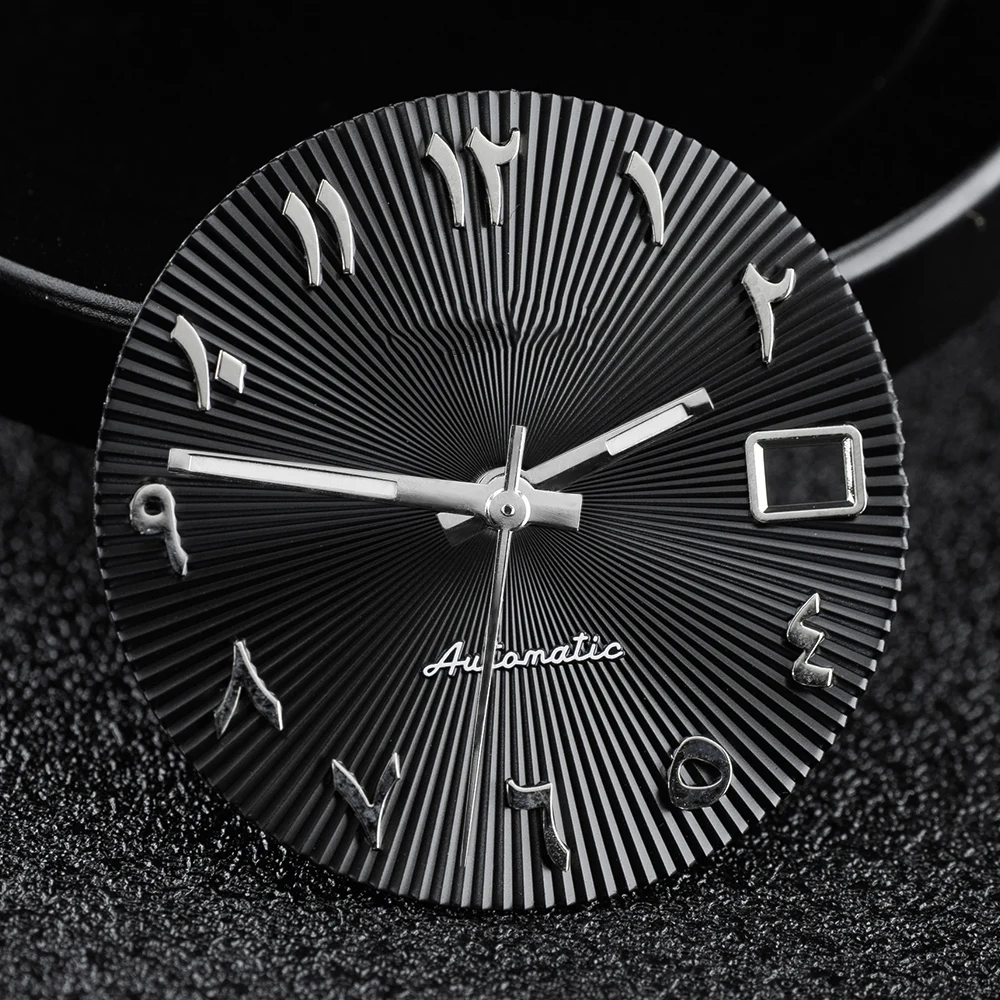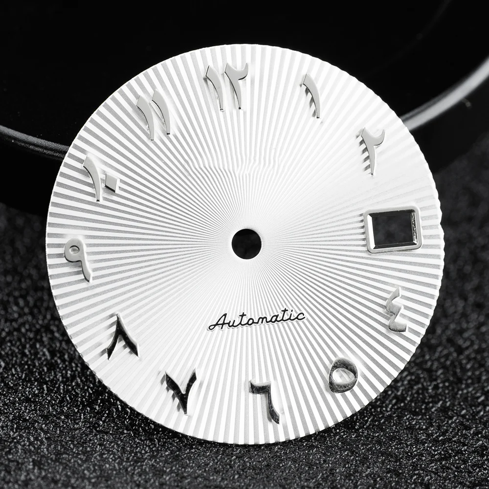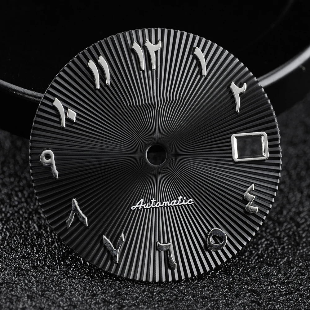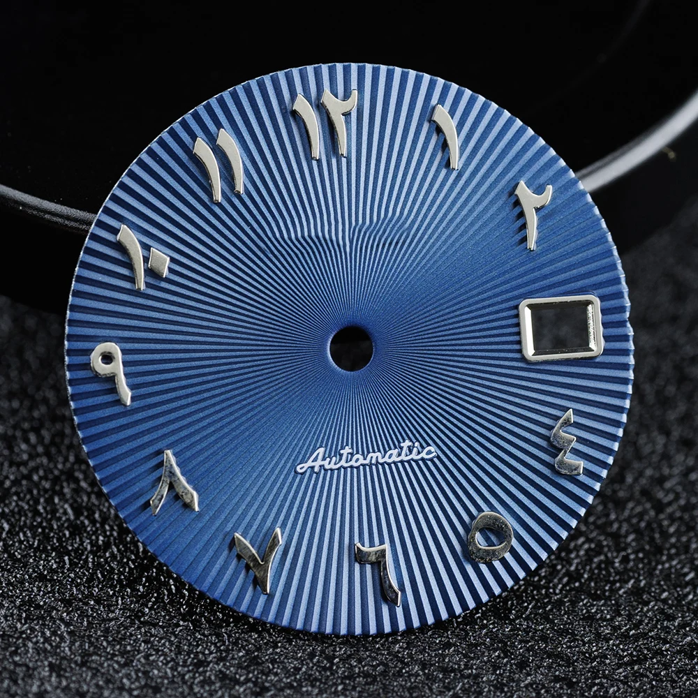 Enhance your watch collection with this versatile NH35/NH36 compatible 28.5mm radial style dial, featuring bold Arabic numerals and a distinctive “S” logo. Crafted with attention to detail, it offers a sleek, textured surface available in multiple colors, including black, silver, blue, and white. The dial’s design combines modern elegance with functional clarity, showcasing raised numerals that contrast sharply against the textured background for optimal readability. Its durable construction and adaptable size make it an ideal replacement or upgrade for your current watch, allowing you to create a customized, sophisticated timepiece that reflects your personal style and craftsmanship.