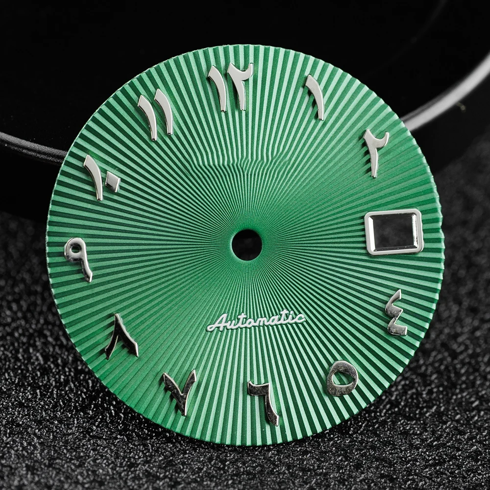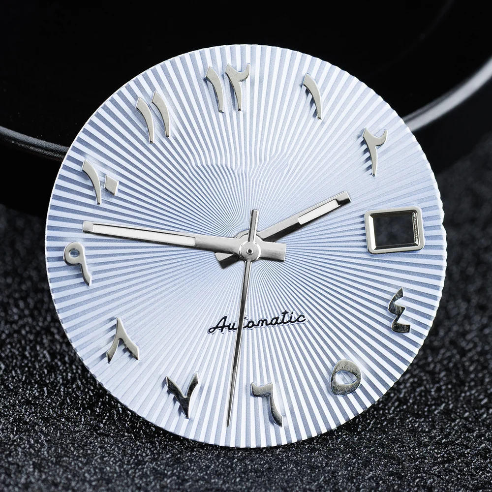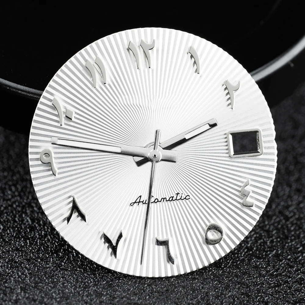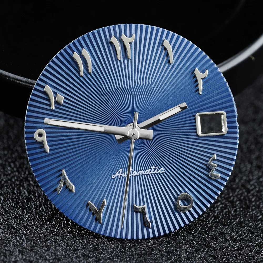Enhance your watch collection with this versatile NH35/NH36 compatible 28.5mm radial style dial, featuring bold Arabic numerals and a distinctive “S” logo. Crafted with attention to detail, it offers a sleek, textured surface available in multiple colors, including black, silver, blue, and white. The dial’s design combines modern elegance with functional clarity, showcasing raised numerals that contrast sharply against the textured background for optimal readability. Its durable construction and adaptable size make it an ideal replacement or upgrade for your current watch, allowing you to create a customized, sophisticated timepiece that reflects your personal style and craftsmanship.