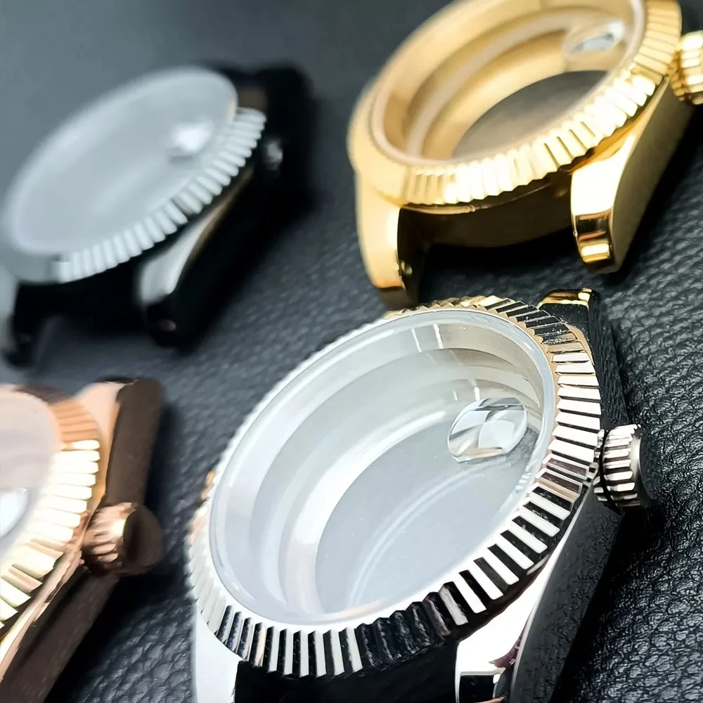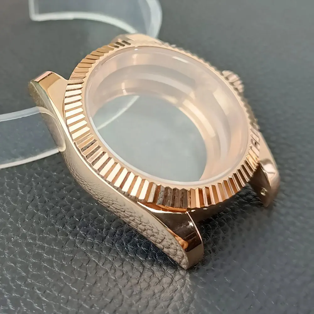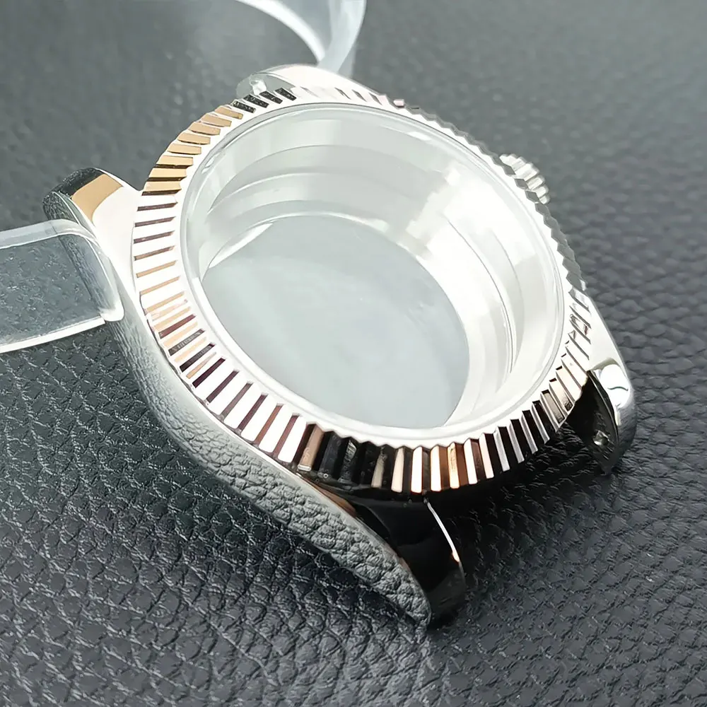 This high-quality NH35 Case features a 41mm diameter and 12.5mm thickness, crafted from durable stainless steel with a polished, reflective finish. Designed to fit NH34, NH35, NH36, NH38, NH70, and NH72 movements, it accommodates dials measuring approximately 28.5 to 29mm and features a 20mm strap width. The case is available in a variety of colors including black, gold, rose gold, and silver, with options for windowed and non-window designs, adding versatility and customization options. Its sapphire glass ensures scratch resistance and clarity, making it an ideal choice for a luxurious, refined timepiece.