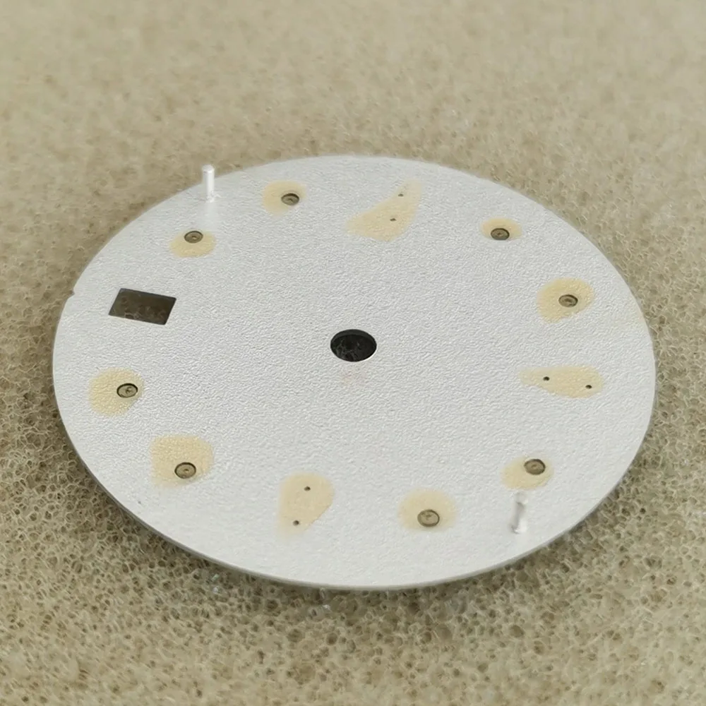 - Technical specifications: 28.5mm diameter, compatible with automatic movements NH35, NH36, 4R, 7S, textured frosted matte surface, and specific for installation at 3 o'clock handle position.