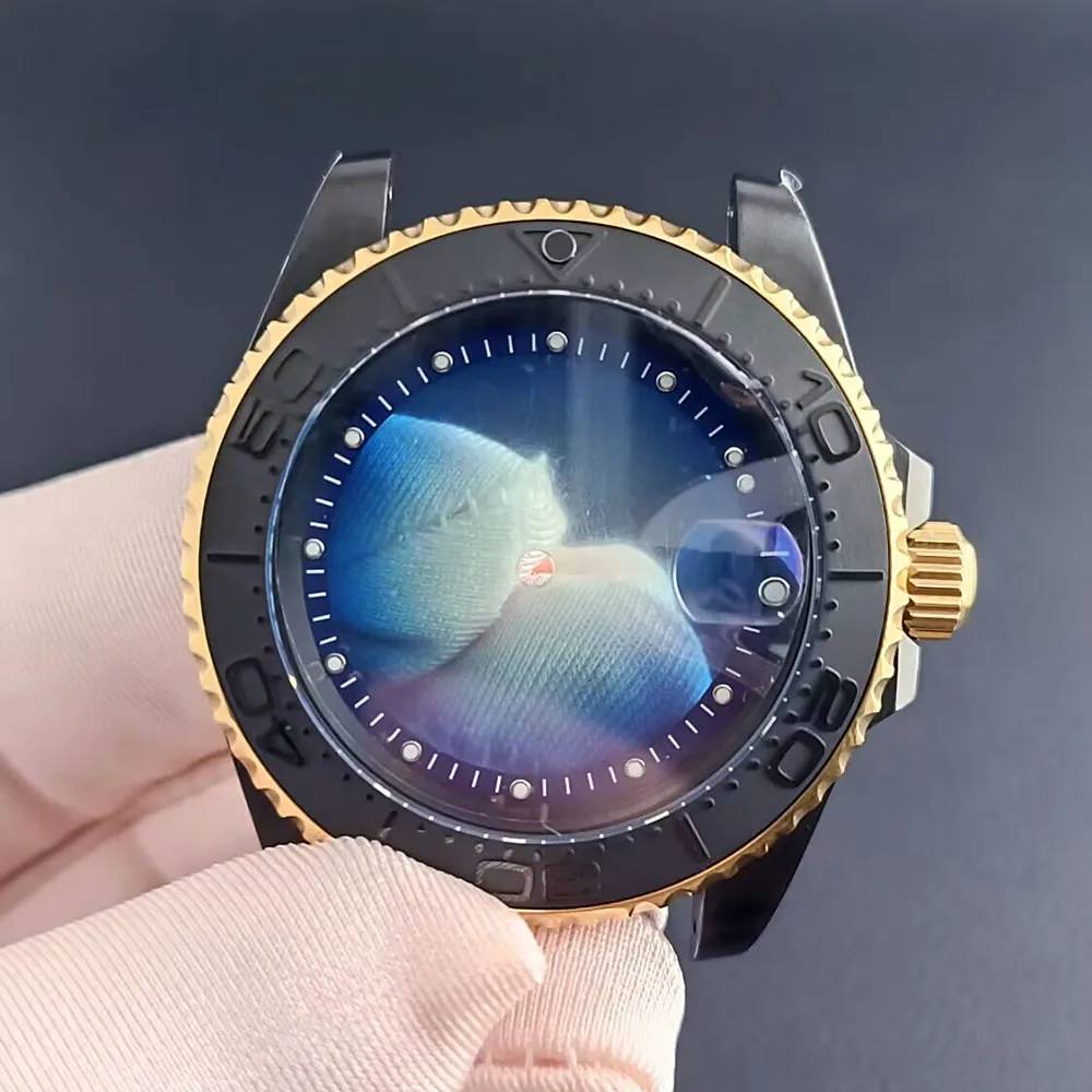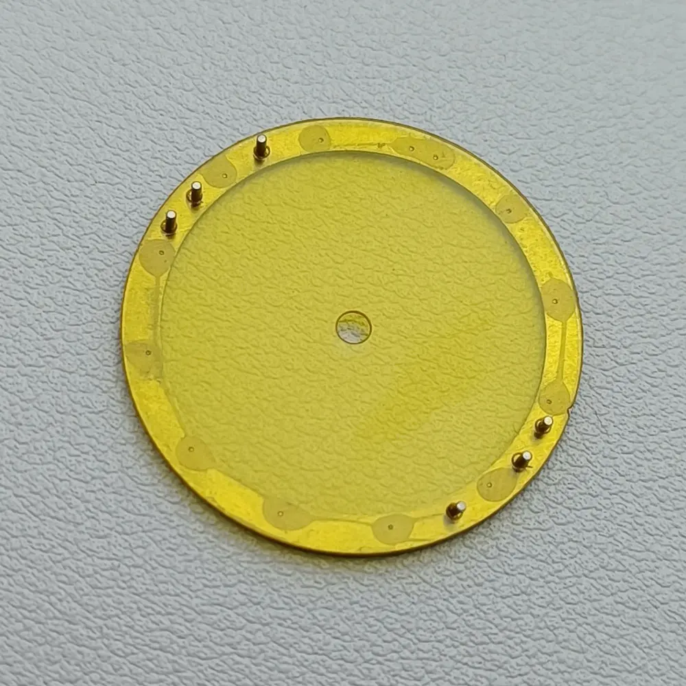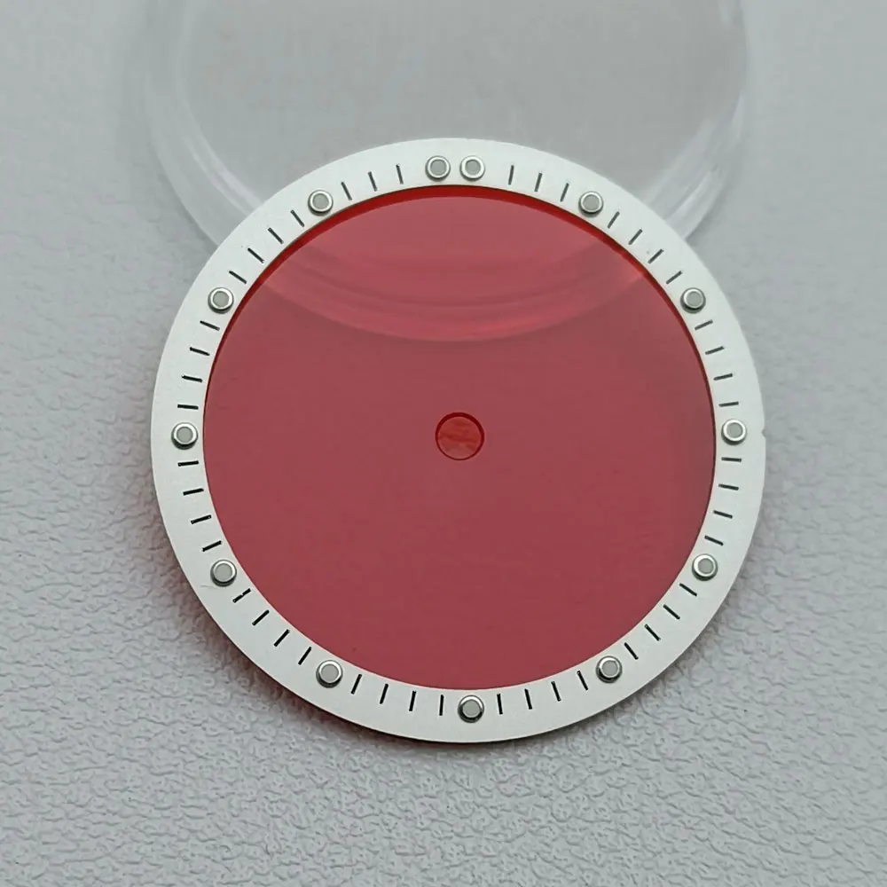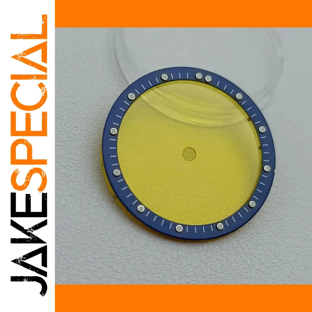 Imagine elevating your diving watch with this stylish, high-quality dial designed for demanding underwater adventures. Featuring a transparent surface, it provides a clear view of internal components or background, enhancing the watch's aesthetic appeal. The vibrant blue outer rim with precisely spaced white minute markers ensures accurate time reading in any lighting conditions. Inside, the yellow textured surface adds a bold, modern touch while potentially boosting luminous visibility underwater. Crafted from durable alloy, this dial offers long-lasting performance with a sleek metallic finish. Its compatibility with NH35, NH36, and NH70 movements makes it an excellent upgrade or replacement for your existing diving watch, combining function with eye-catching design to meet the needs of enthusiasts and professionals alike.