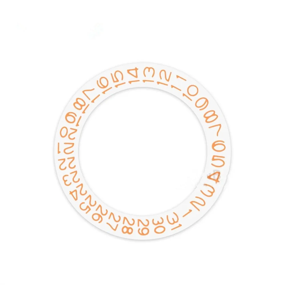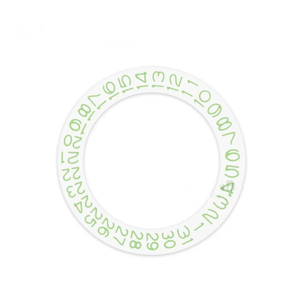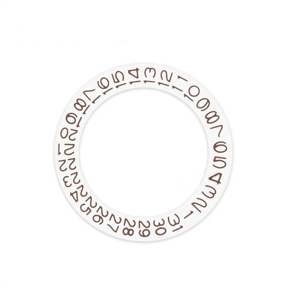 Imagine seamlessly upgrading your wristwatch with this meticulously designed replacement calendar disc, custom-made for NH35 and NH36 movements. The white background modification provides a clean, modern look, enhancing the overall aesthetic of your timepiece. Crafted from durable rubber, it features a bright gloss finish that offers a sleek, polished appearance. The circular design is precisely cut with a smooth, rounded edge for easy installation. With printed black numerals from 1 to 31 around the inner circle, it ensures clear visibility for the date. This component is compatible with three-point watch cases, making your watch repair or customization effortless. Trust this high-quality dial for a sophisticated yet practical upgrade.
