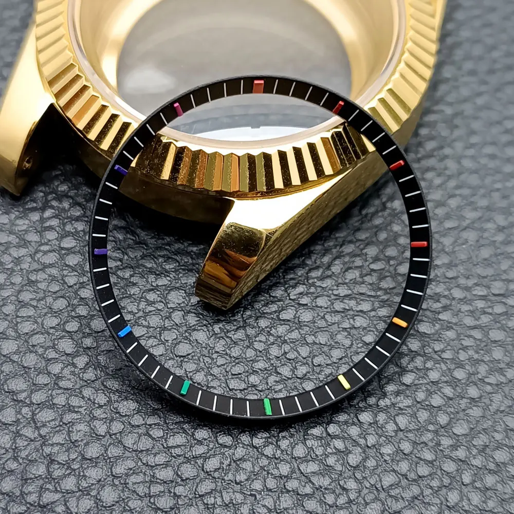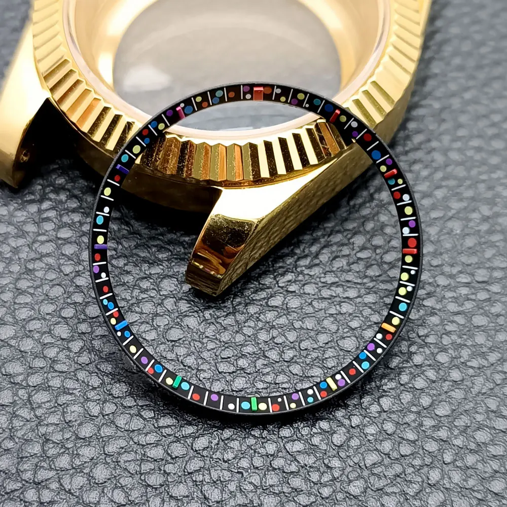 This collection of high-quality inner rings is specifically designed to replace the NH35 and NH36 watch cases. Available in an array of vibrant colors and polished finishes, each ring adds a distinct style to your timepiece. The rings' smooth, reflective surfaces in polished gold, silver, black, and a range of vivid copper variations highlight their premium quality. Crafted from durable hard plastic, they measure 30.3mm in outer diameter and 27.3mm in inner diameter. Perfect for collectors and enthusiasts aiming to enhance their wristwatch aesthetics, this stylish assortment offers versatility and charm for your customizing needs.