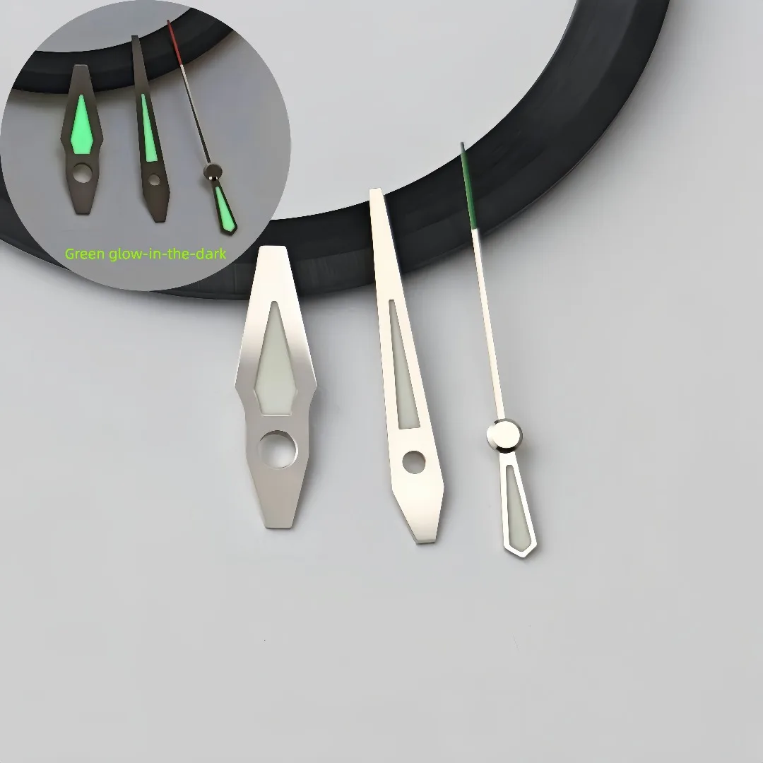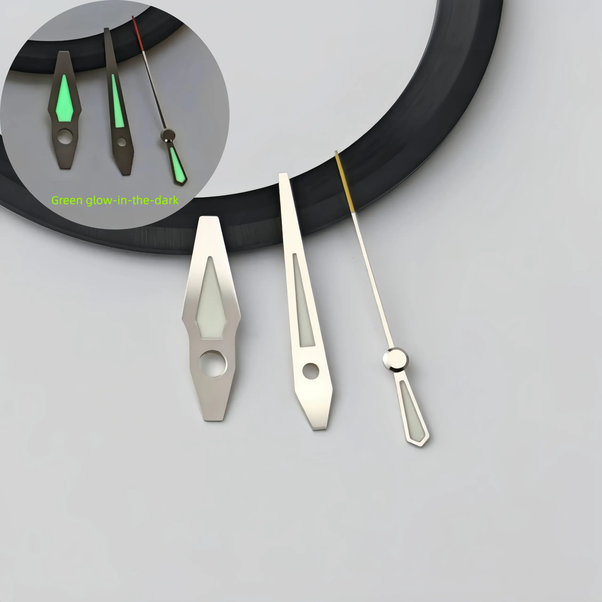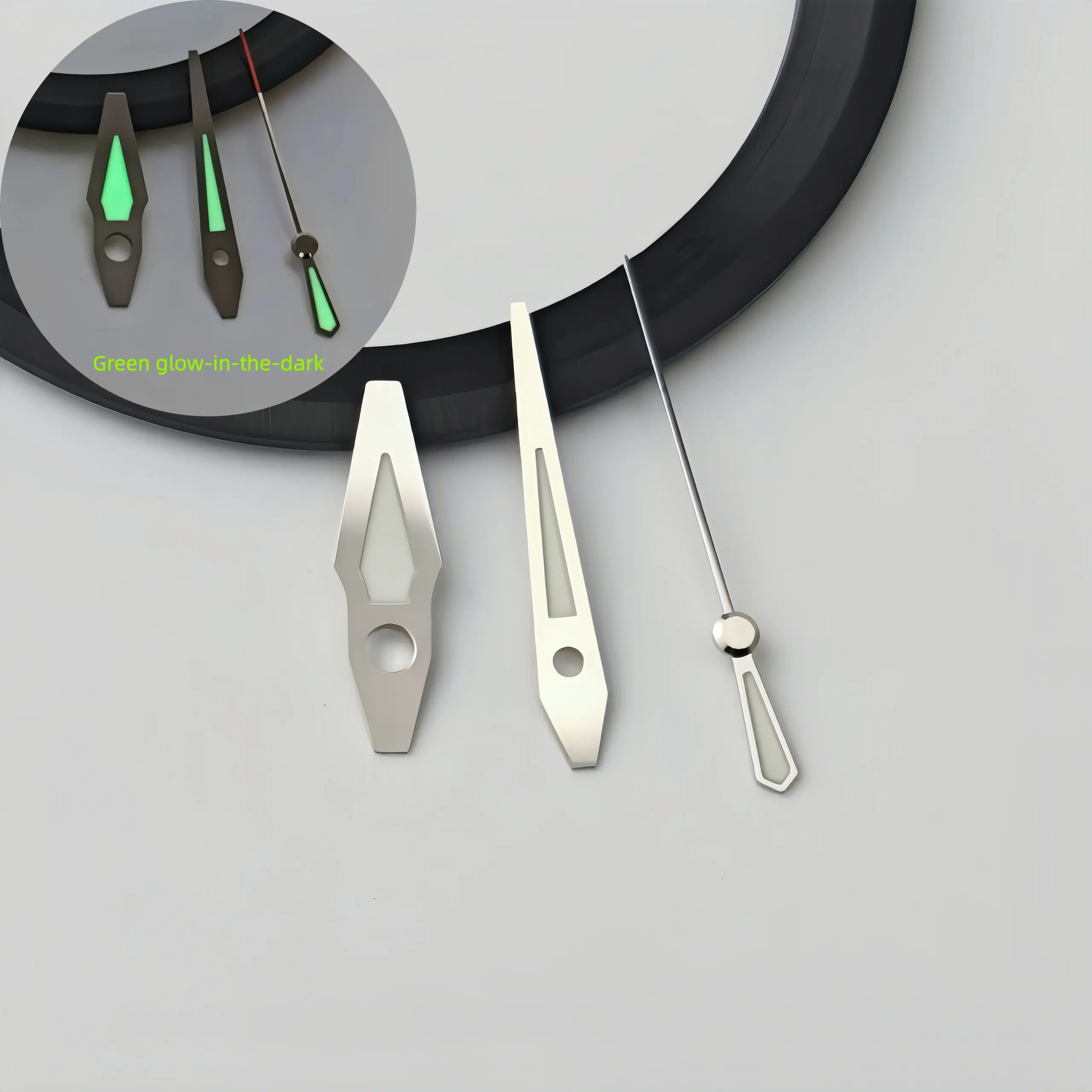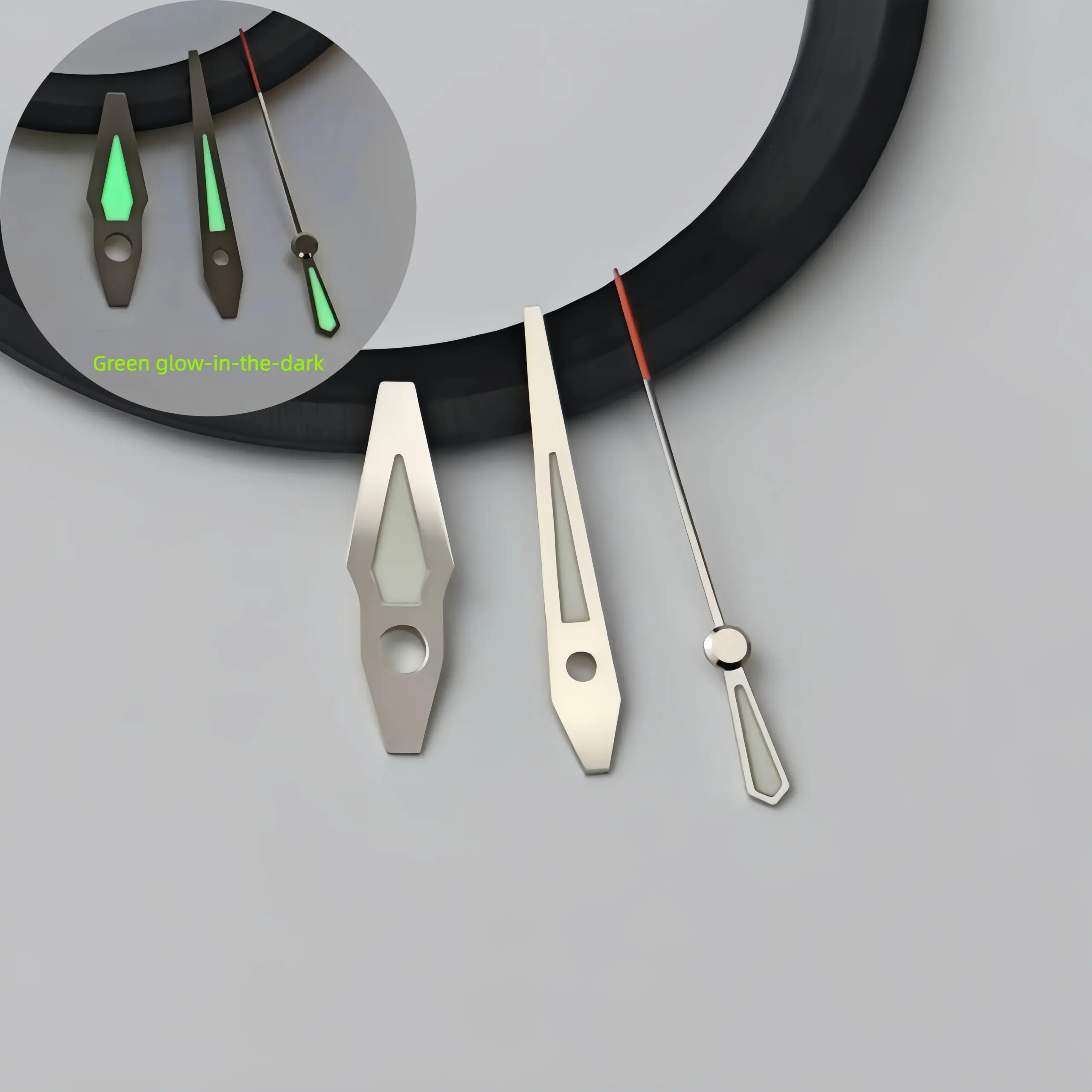 Imagine elevating your watch modification project with this premium set of NH35 watch hands. Crafted from polished stainless steel, these hands bring a sleek and modern aesthetic to your timepiece. Their bold, rectangular shapes and luminous insets ensure easy readability in any lighting condition, giving your watch a refined yet functional look. The set features a distinctive 12.5mm mushroom pointer with a luminous green tip, adding a unique flair. Whether you’re upgrading an existing watch or creating a custom piece, these hands provide a perfect blend of style and practicality. Designed for high compatibility, they fit various NH series movements, transforming your watch into a standout accessory.