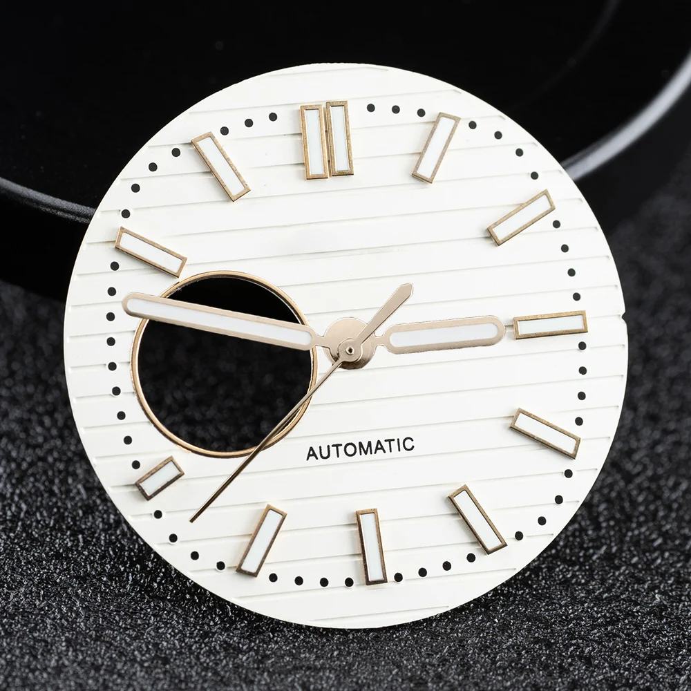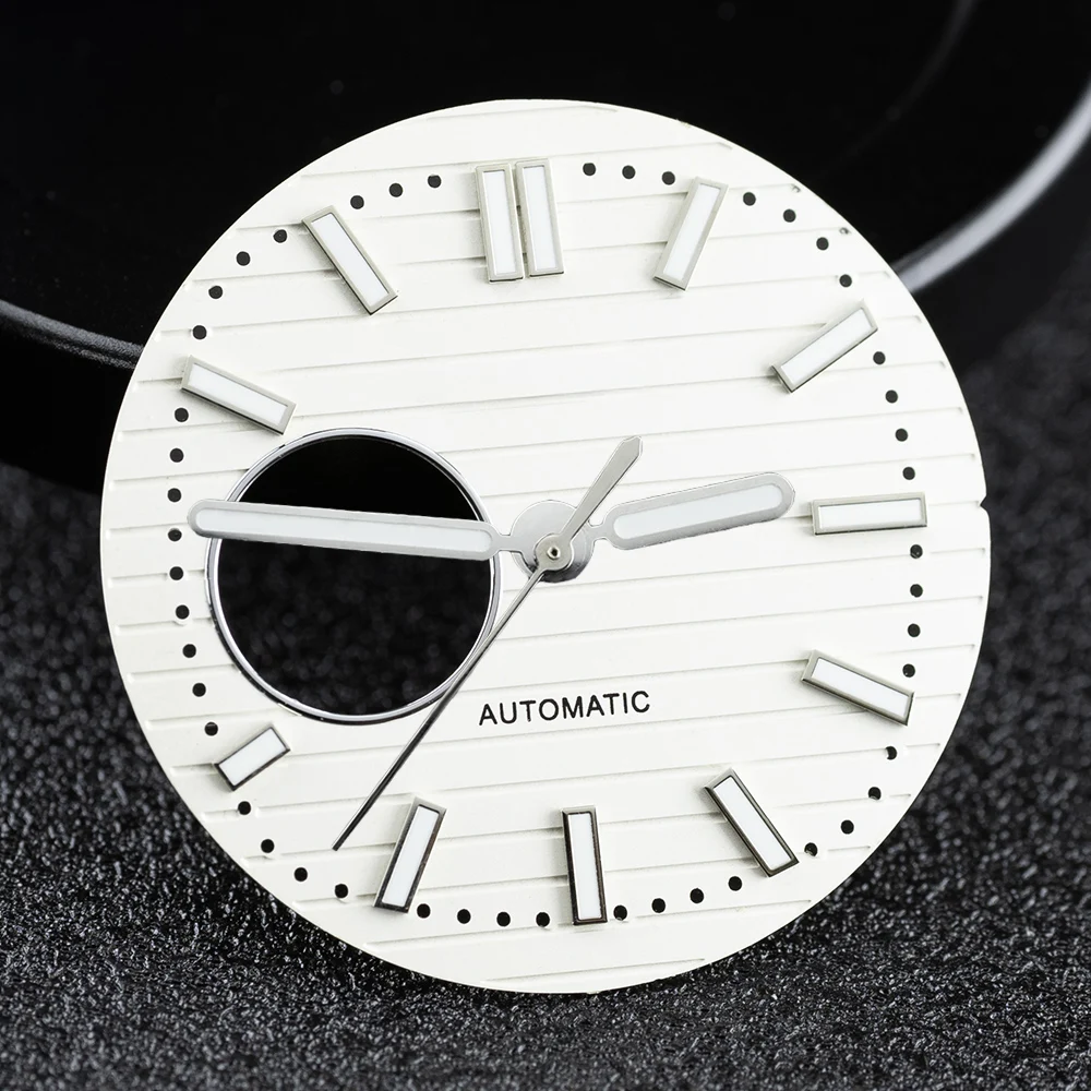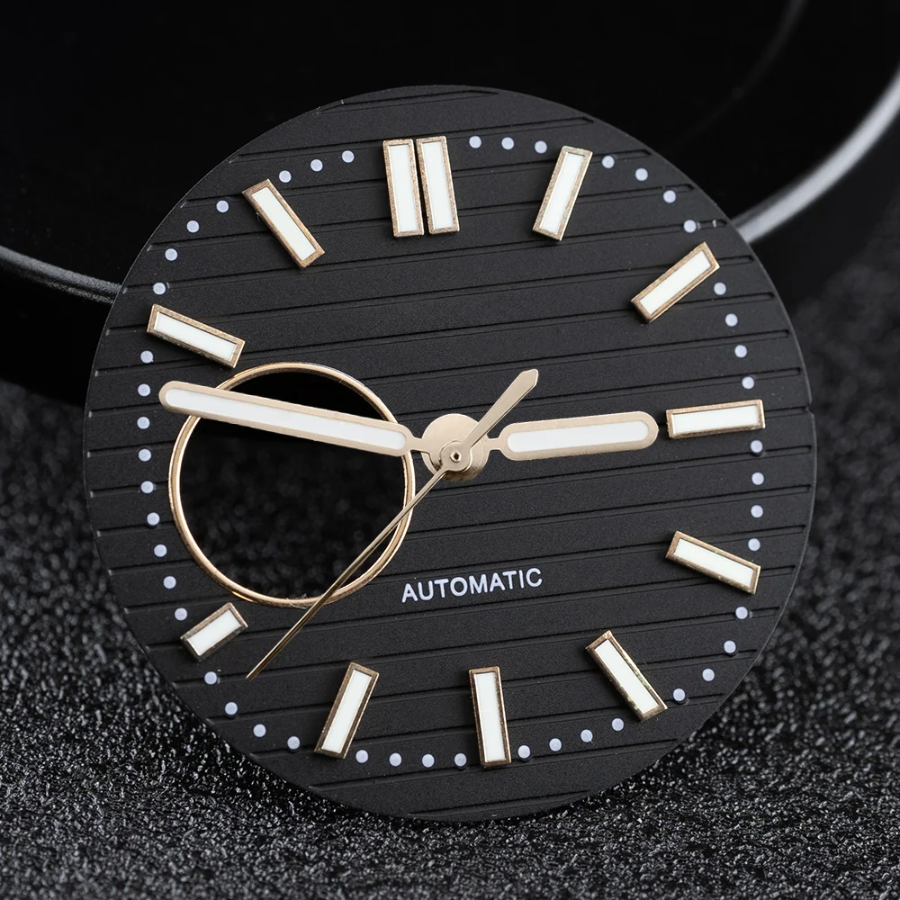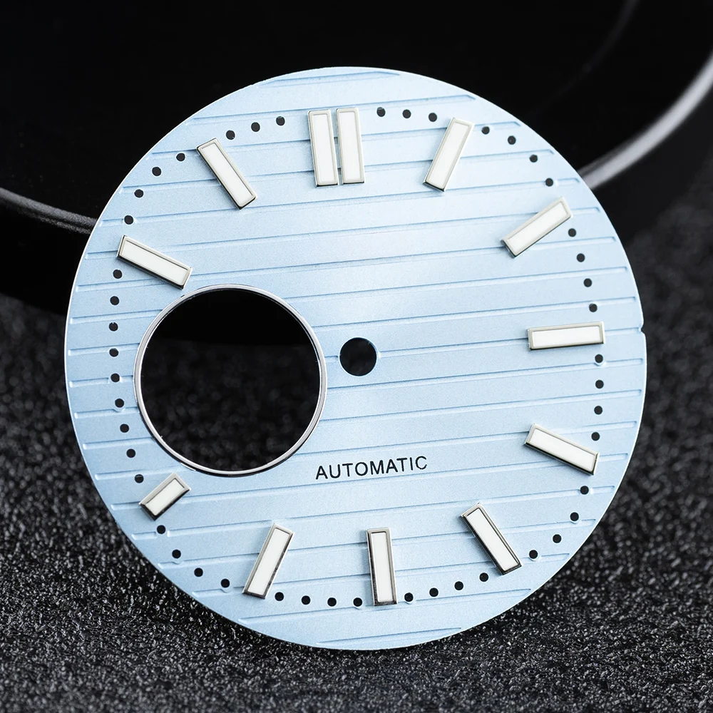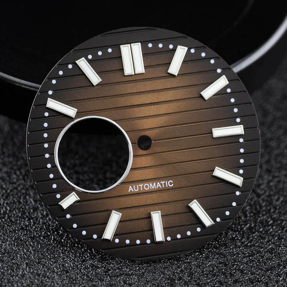 Elevate your watch collection with this versatile NH38 style dial, measuring 30.5mm in diameter and designed for NH38 movements. Its textured, hollow pattern features luminous rectangular markers for enhanced visibility in low light, complemented by a stylish S logo adding a modern touch. Available in color options such as white, black, and gradient brown, this high-quality dial is crafted from compatible case materials, making it suitable for various customization or replacement projects. Perfect for hobbyists and professional watchmakers alike, its refined design seamlessly blends functionality with modern aesthetics, allowing you to create a distinctive timepiece that reflects your personal style and craftsmanship.