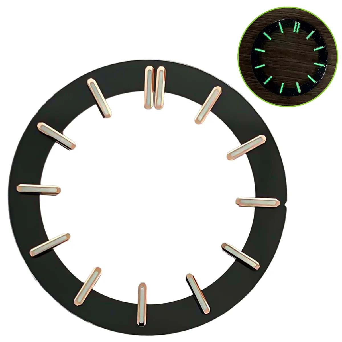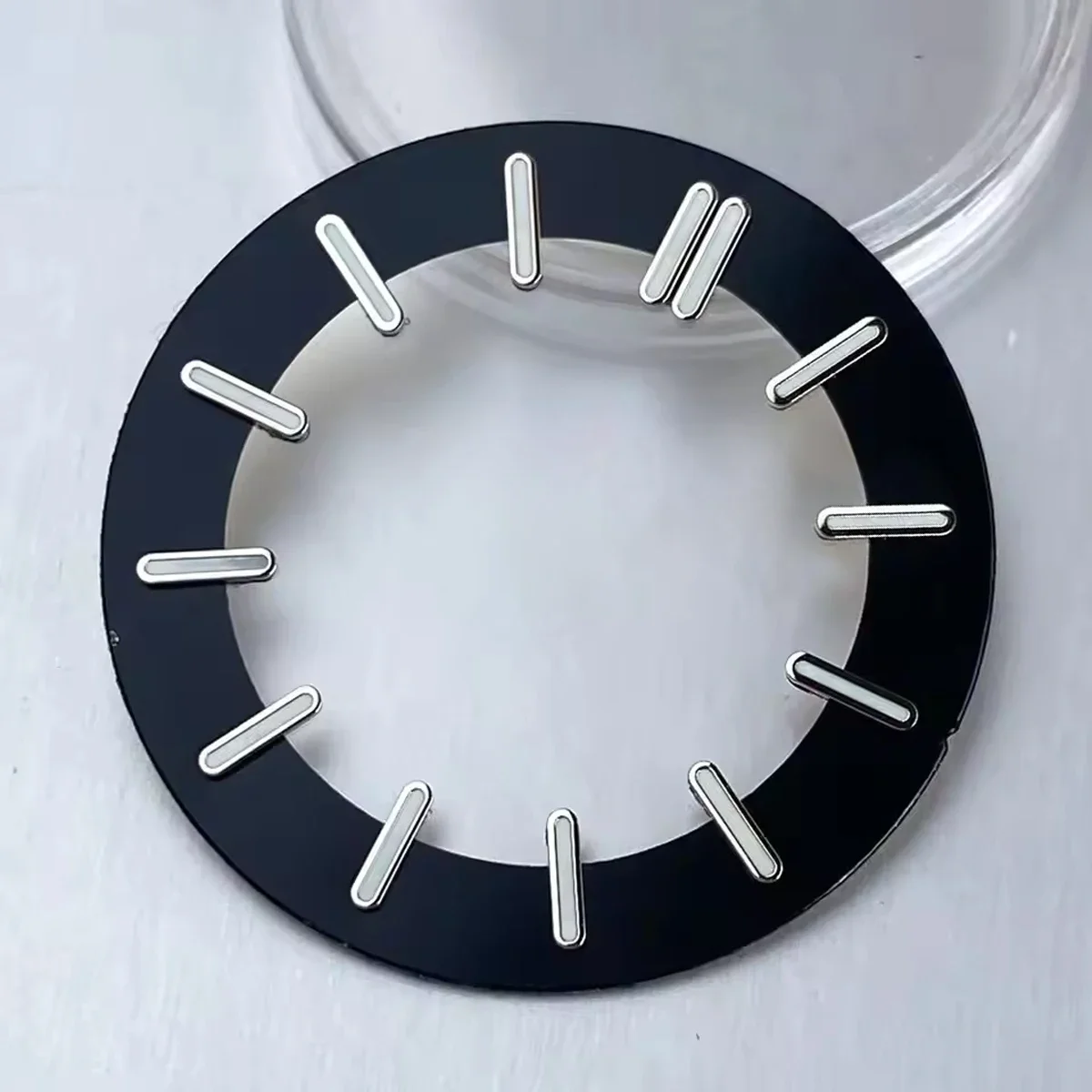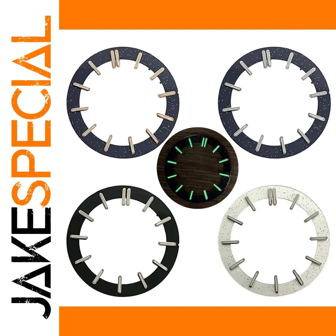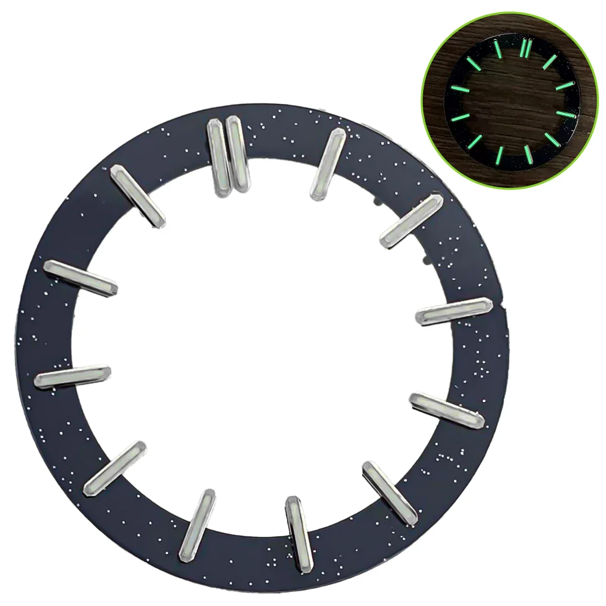 Experience the modern elegance of this NH70 31.8mm watch dial, designed to elevate your timepiece. Crafted from high-quality, durable, and wear-resistant material, it offers a sleek, polished surface with a minimalist, numberless design. The vibrant translucent outer rings come in various colors, including deep navy blue speckled with white, solid bright white, classic black, and dark with subtle white speckles, adding personality to your watch. The luminous green markers and slim hands ensure readability in low-light conditions. Whether you're repairing, upgrading, or customizing your watch, this dial provides an effortless way to enhance style and function. Perfect for casual and fashionable looks, it’s a reliable choice for watch enthusiasts seeking quality accessories.