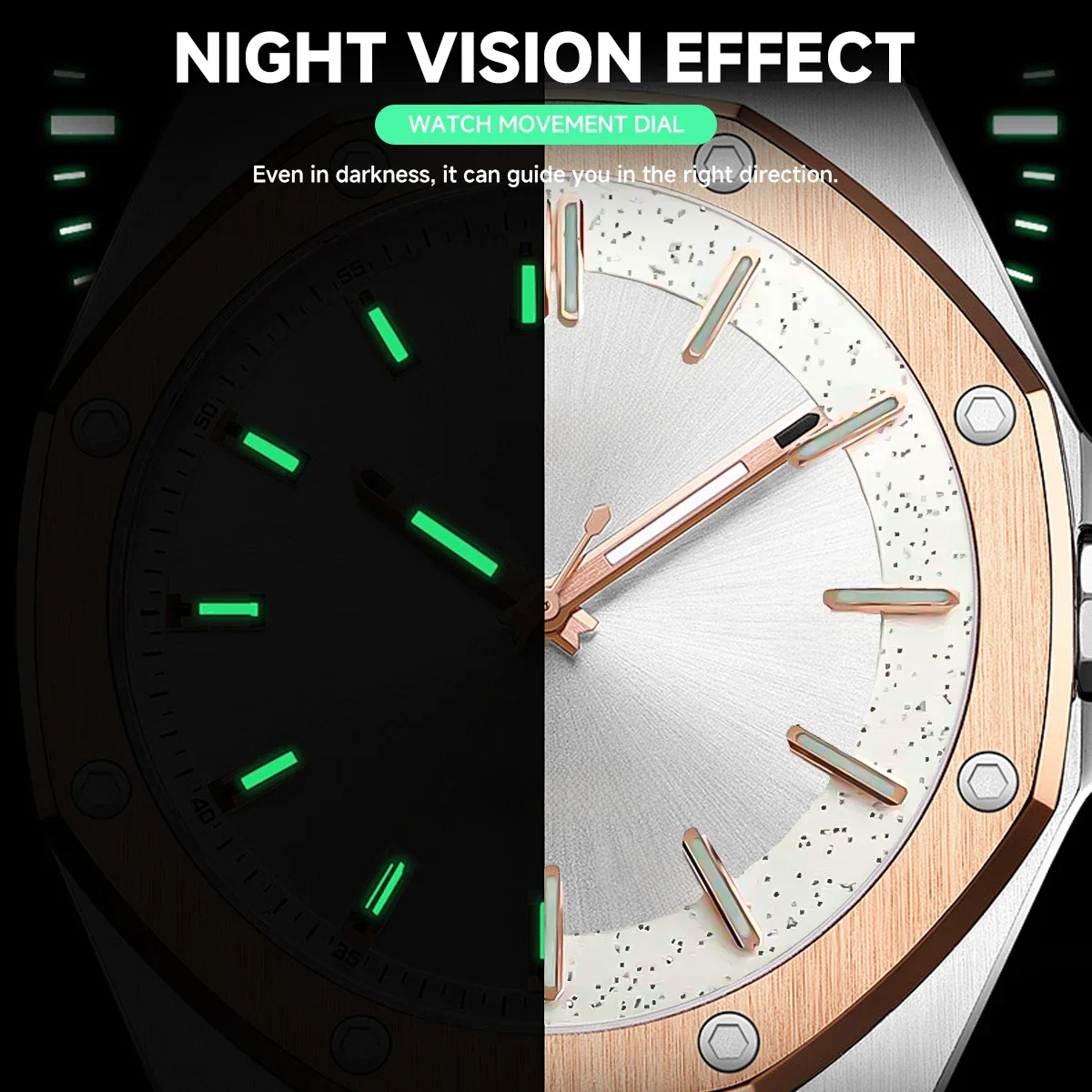 - Equipped with luminous green hour markers and slim luminous hands for excellent visibility in low light.