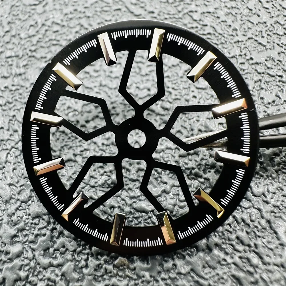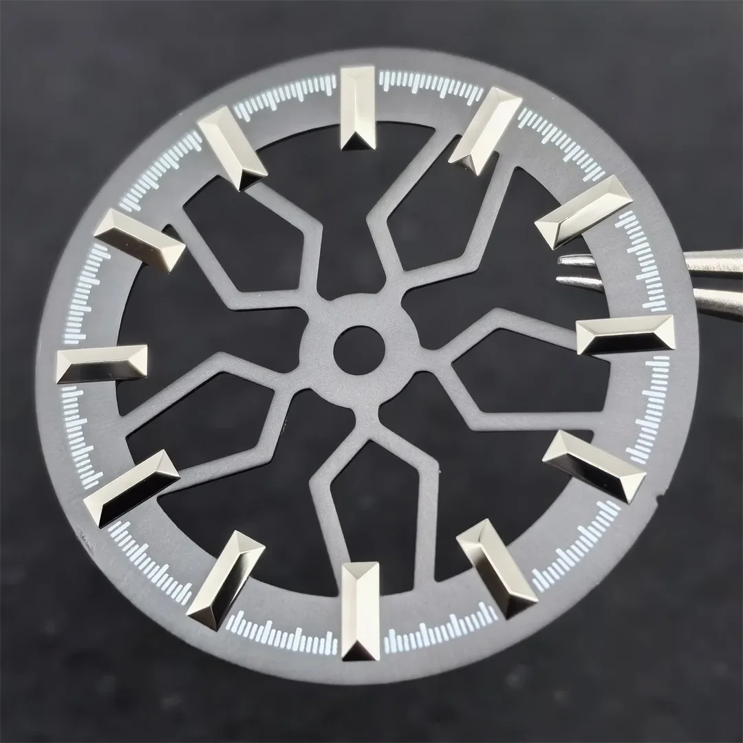 Imagine transforming your timepiece into a work of art with this NH70 Watch Dial. Crafted from high-quality stainless steel, each skeletonized dial measures 28.5 mm in diameter. The silver base and gold-tone markers blend elegance with modern aesthetics, making it perfect for any occasion. The intricate cutout patterns invite admiration, ensuring all eyes are on your wrist. Subtle white markings around the edges enhance the design without overpowering its sophistication. This stylish option is designed for the NH70 movement and is ideal for those looking to customize their watch. Embrace the fusion of fashion and functionality as you showcase your unique taste.
