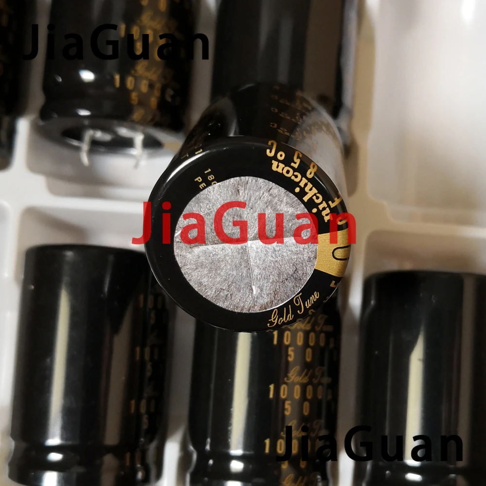 Enhance your audio amplifier with this set of two original Japanese Nichicon KG Type I capacitors, each measuring 30×45 mm with a capacitance of 10,000μF and rated at 50V. These sleek, black cylindrical components feature gold labeling and a precise 10mm lead spacing, ensuring reliable filtering performance. Designed for high-capacity, professional-grade electronics, they offer a modern industrial aesthetic combined with durability and efficiency. Perfect for upgrading or repairing audio systems, these capacitors provide consistent, high-quality signal stabilization. Trust in the Ni chi con series to deliver the essential power support needed for optimum audio clarity and performance.