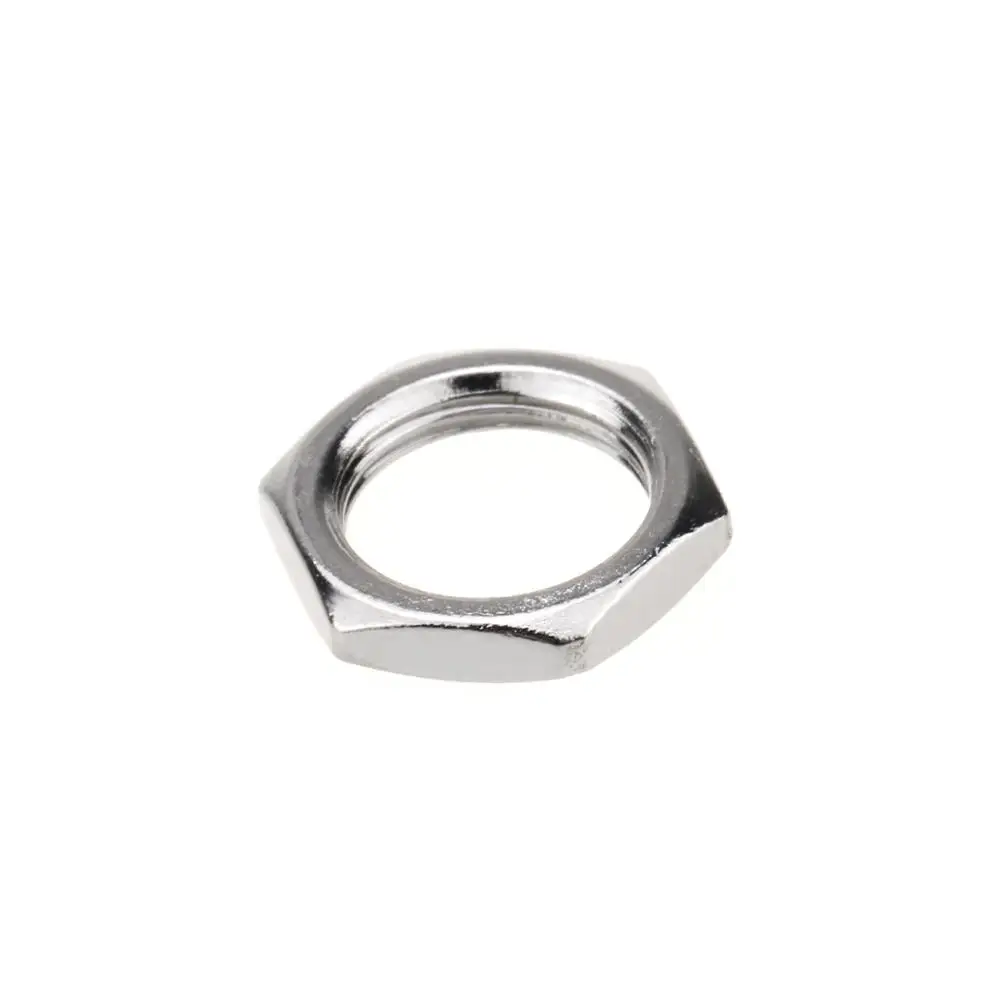 Enhance your guitar’s performance with this set of 20 nickel-plated metal control nuts for 3/8 inch (9.5mm) guitar potentiometers, compatible with CTS, Fender, Bourns, and Dimarzio models. Crafted from durable metal with a sleek, shiny finish, these nuts feature a standard imperial thread size and an inner diameter of 3/8 inch (9.5mm). Their hexagonal shape ensures easy gripping and secure installation, providing a reliable hold during tuning and adjustments. Perfect for replacing worn or damaged nuts, these high-quality components help maintain the integrity and functionality of your guitar’s control pots, giving your instrument a professional, polished look.