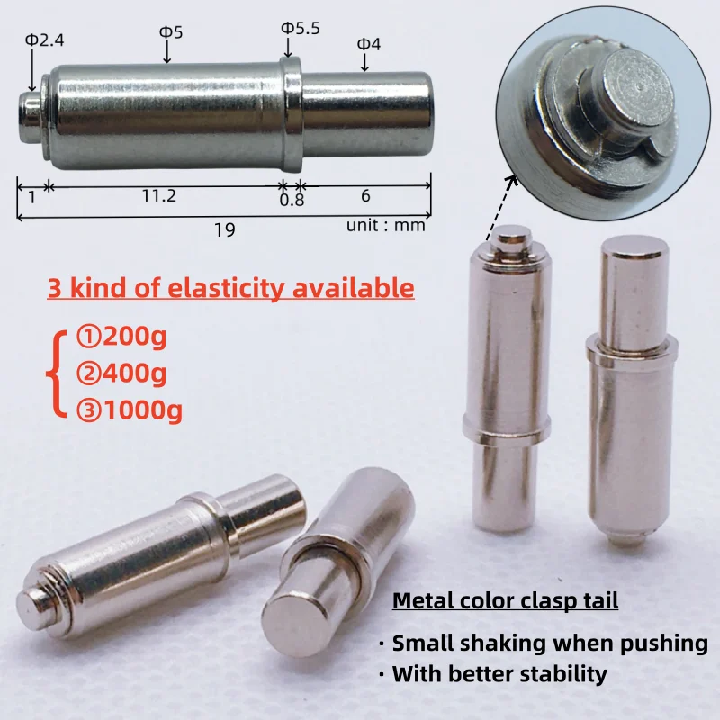 - Each pin measures approximately 19mm in length, with an adjustable diameter of up to 5.0mm, available in sizes like 2.0mm, 3.0mm, 4.0mm, 8.5mm, and 10.0mm for versatile applications.