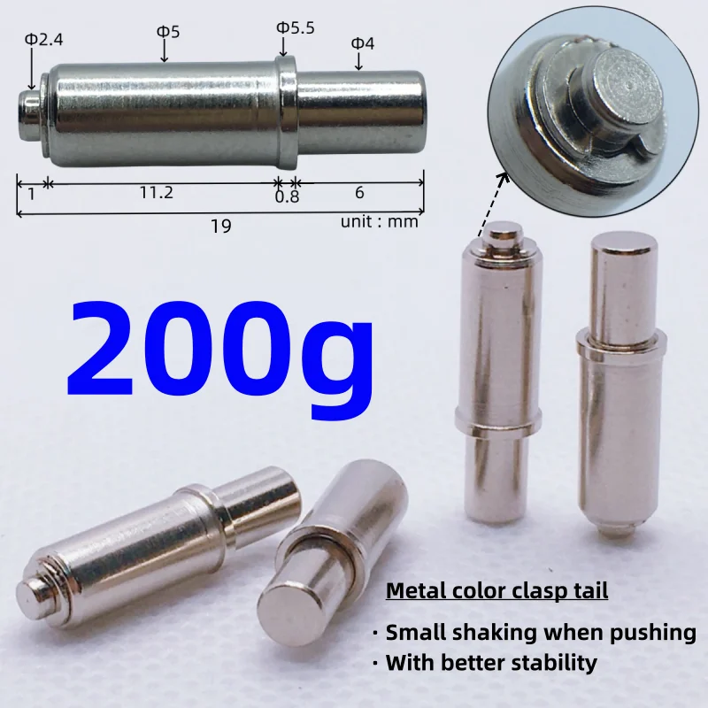 Experience the reliability and durability of this set of nickel spring test pins, perfect for electrical testing and PCB positioning. Each pin features a polished, shiny finish that reflects light, giving a sleek, modern look. With a uniform cylindrical shape and smooth, rounded flat heads, these pins provide a clean, minimalist appearance while ensuring precise positioning. Designed for durability and high performance, each pin measures 19mm in length and has a maximum diameter of 5.0mm, with variations available in diameters from 2.0mm to 10.0mm. The pins are CE-certified and customizable, suitable for various testing and electronic applications. This collection enhances your toolkit with high-quality components engineered for reliable use in demanding environments.