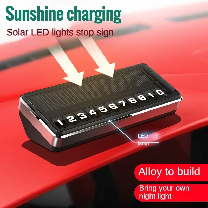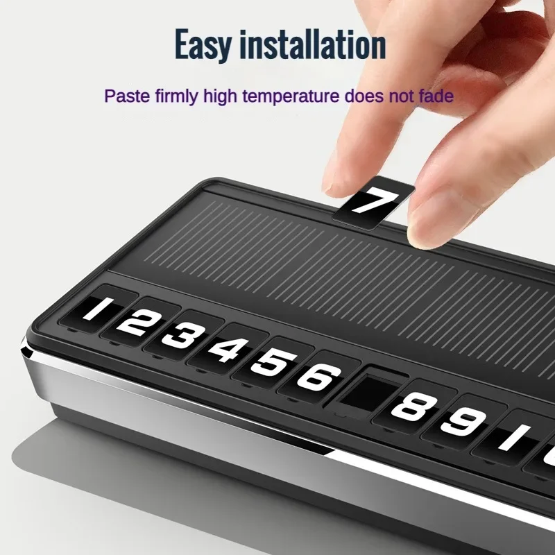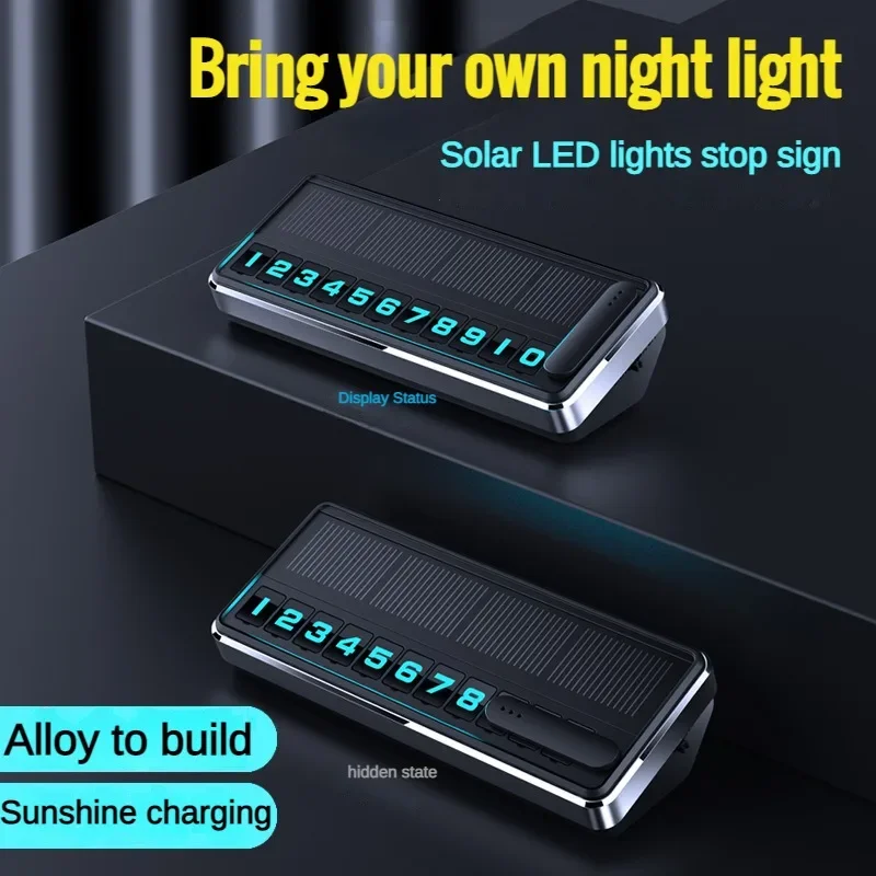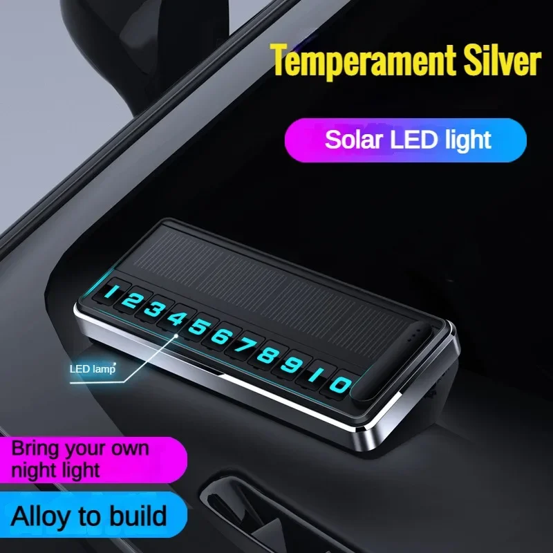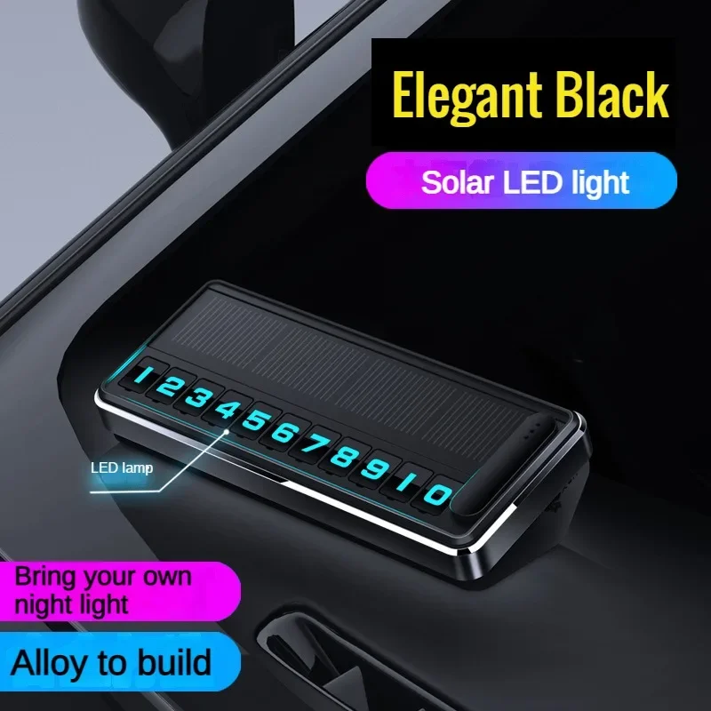 Enhance your vehicle’s interior with this sleek Night Light Parking Sign, measuring 105 x 42 x 28 mm and crafted from durable ABS and aluminum alloy. Featuring a luxurious black and silver finish, it includes solar-powered LED illumination for clear night visibility, and a rotating dial to hide numbers for privacy. Wireless and lightweight at 65 grams, it installs easily on your dashboard with a scratch-free, residue-free removable base. Its compact, modern design offers practical parking assistance while elevating your car’s aesthetic with polished metallic accents. Ideal as a sophisticated gift, this weather-resistant device combines functionality with high-end style for ultimate convenience.