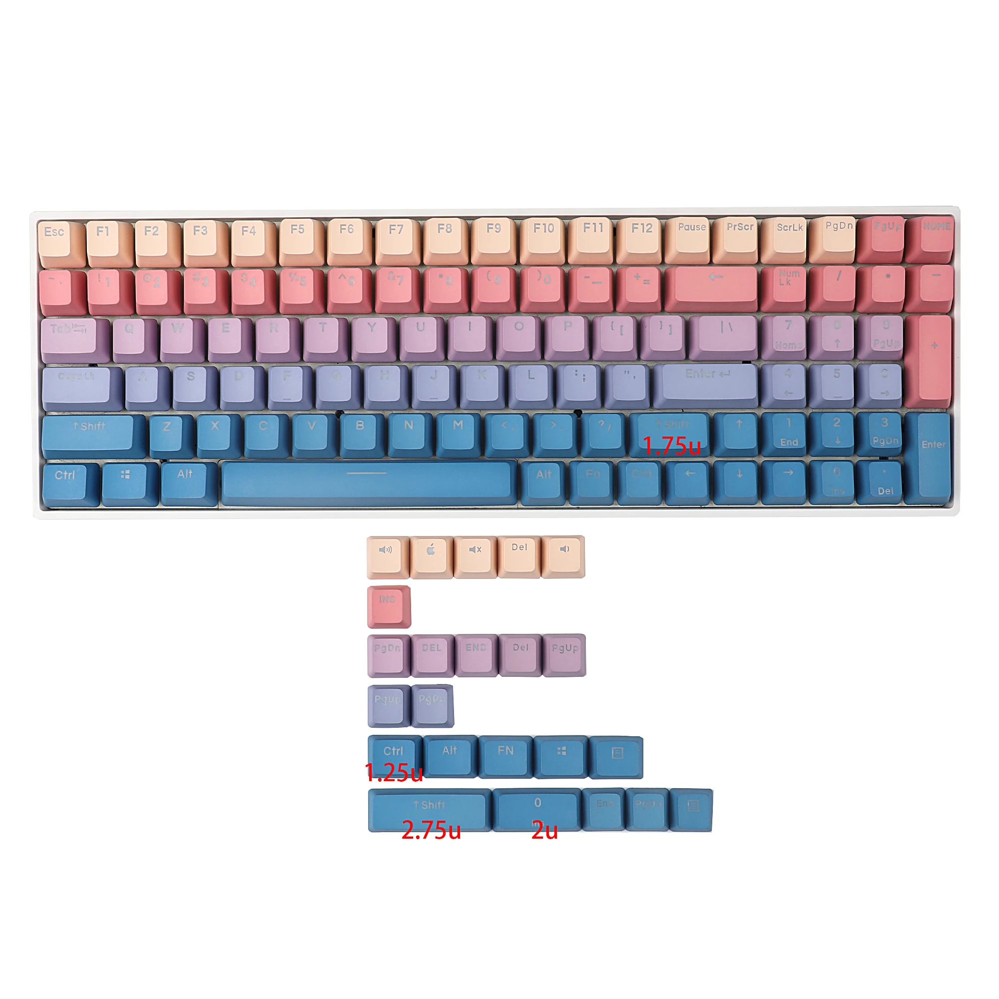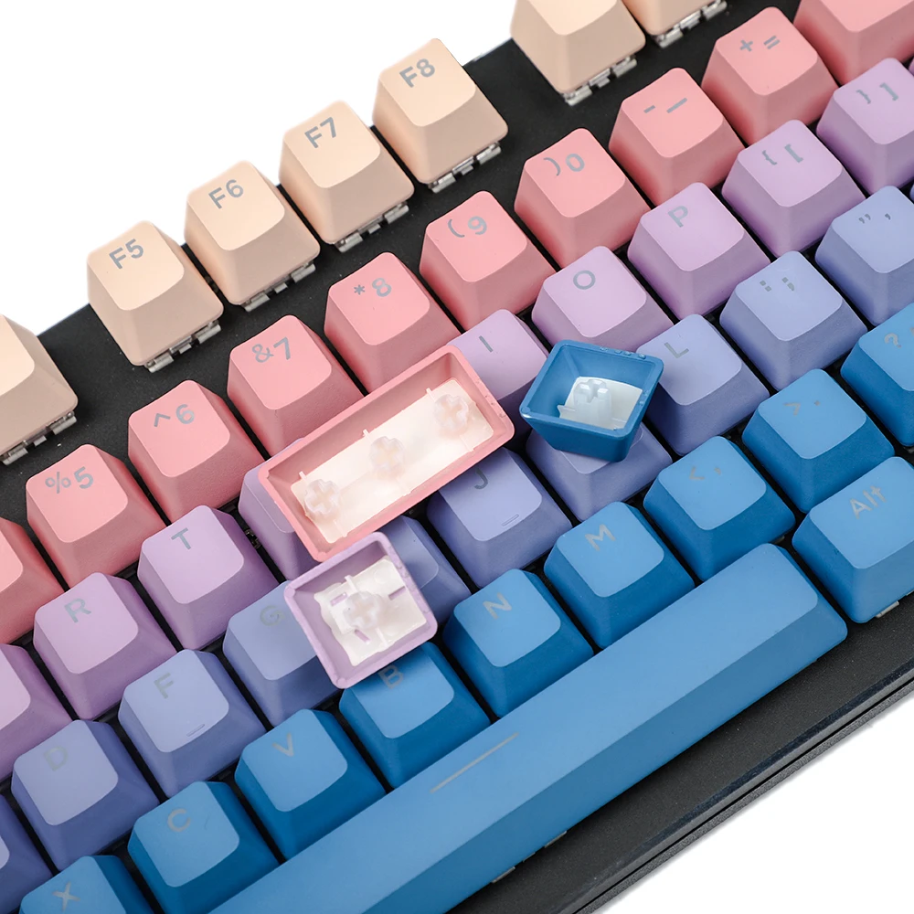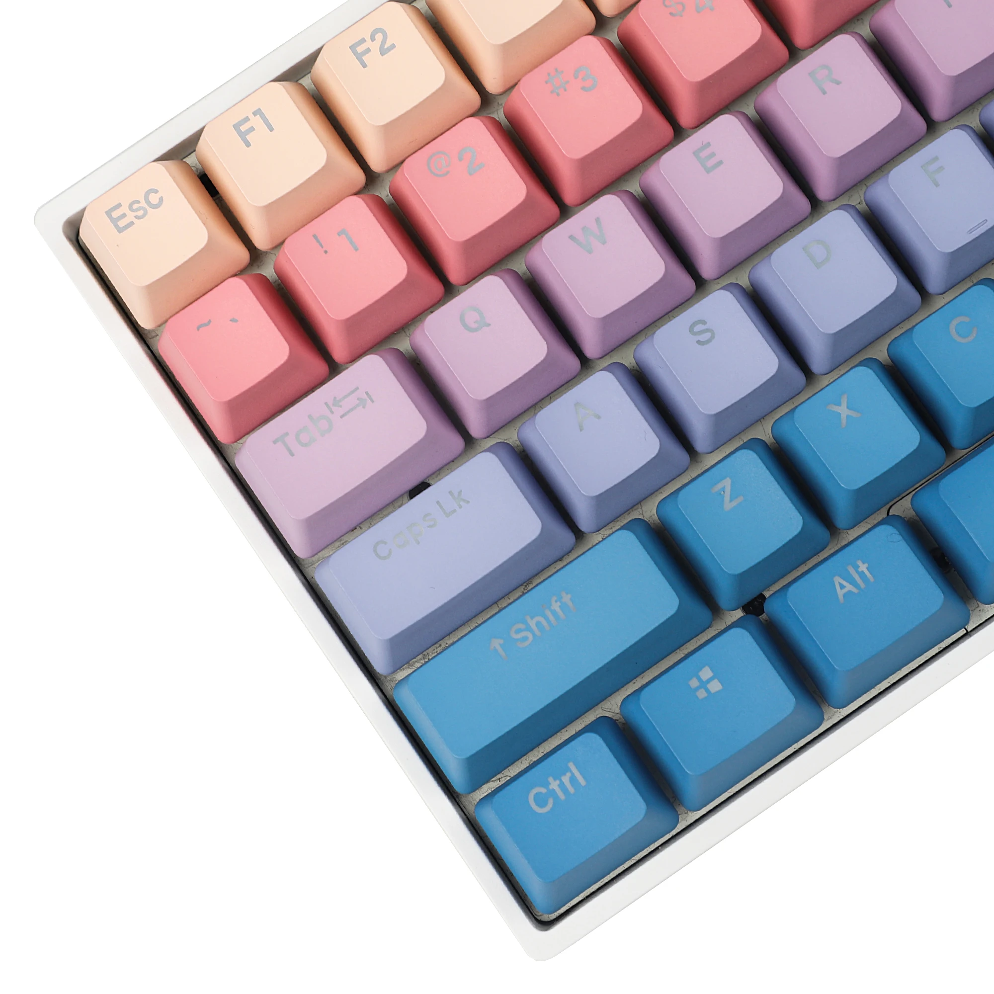 Imagine transforming your typing experience into a stunning visual featuring vibrant, backlit-ready keycaps that look as good as they perform. With their durable construction and gorgeous sunset-inspired gradient, these keycaps make your keyboard uniquely yours. Whether for a professional workstation or gaming rig, they offer both style and reliability. Don't miss the chance to elevate your setup—these versatile, eye-catching keycaps are just a click away from becoming the centerpiece of your keyboard collection. Get ready to enjoy luminous typing sessions and show off a truly personalized aesthetic today!