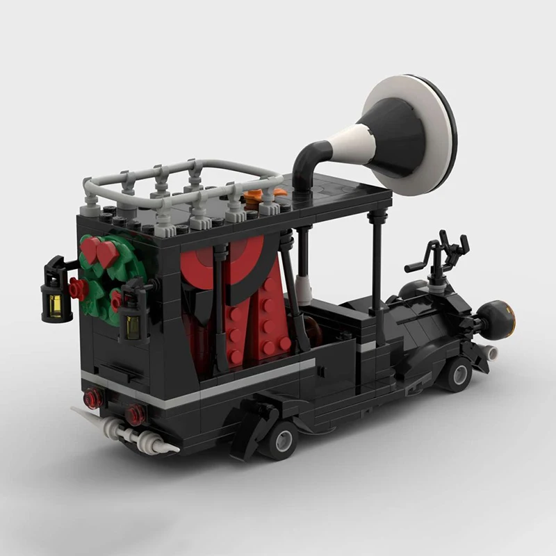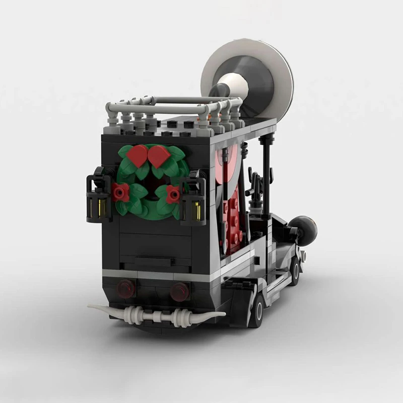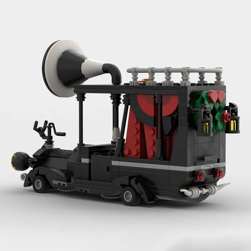Step into the world of creativity with this detailed model of the Mayor's Car from “The Nightmare Before Christmas.” Crafted from 451 high-quality ABS plastic blocks, this set captures the vehicle's sleek, black body with its dynamic, aerodynamic shape, and distinctive features. The transparent yellow headlights, complemented by a simple gray bumper, bring brightness and character, while the interior’s warm red and earthy brown accents add depth and realism to your build. The flat black roof, supported by black pillars, includes small fixtures like an orange detail and a gray railing, enhancing authenticity. The standout feature is the large white and black loudspeaker at the rear, giving this model a playful, exaggerated charm. Perfect for display or as a creative project, this set invites you to bring a unique character to life from your favorite Tim Burton film.