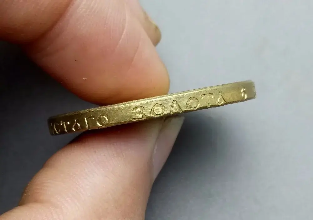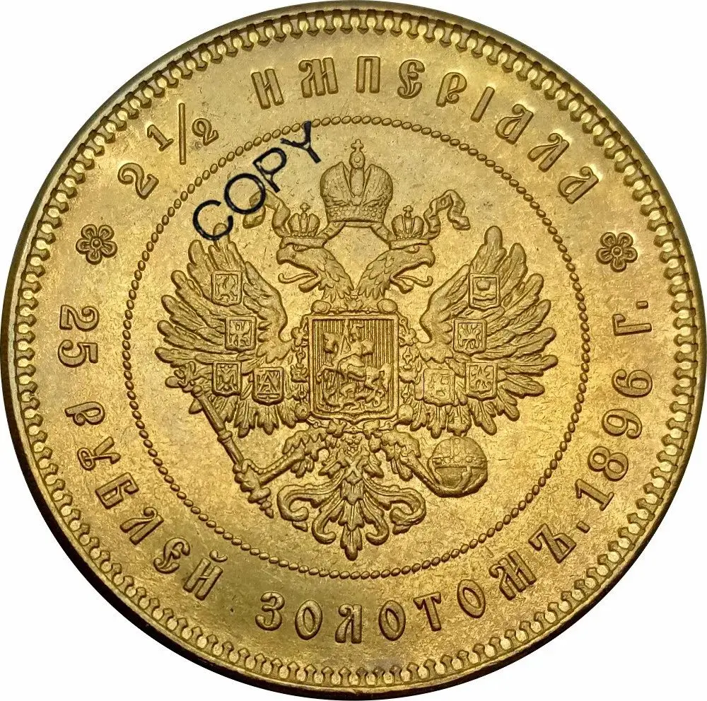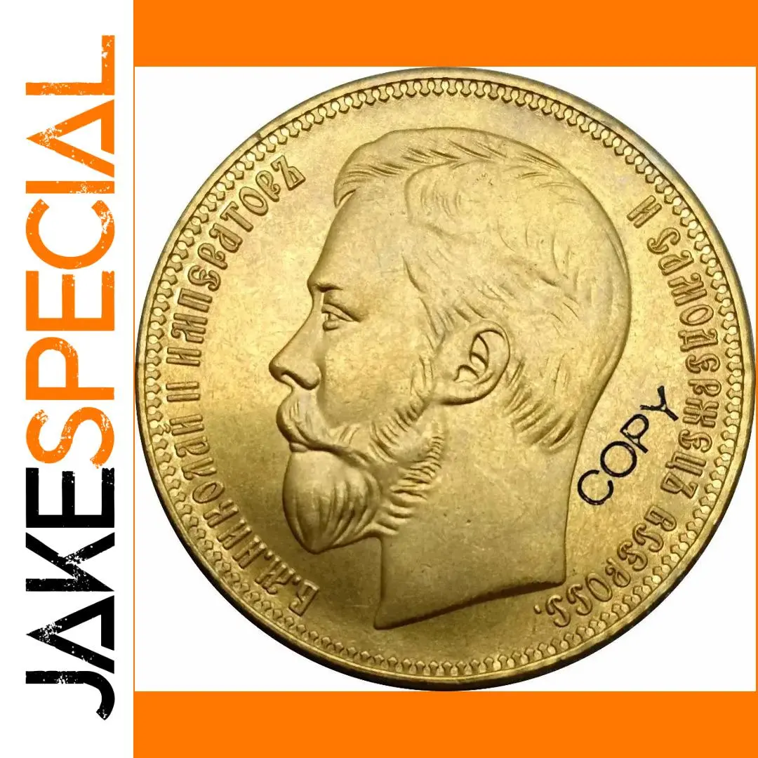 Imagine adding a remarkable piece of history to your collection. This beautifully crafted Nikolai II 25 Rubles replica exudes regal elegance, featuring a bright, shiny gold-like hue achieved through polished brass finish. Its detailed design showcases a sharply rendered profile of Tsar Nicholas II, capturing his styled hair, mustache, and full beard with precision. Encircled by finely inscribed Cyrillic texts and bordered by decorative dotted edges, the piece radiates authenticity and craftsmanship. Its smooth, rounded edges enhance the vintage aesthetic, making it a striking display item. Perfect for history lovers and collectors, this replica elevates any space with its ornate, luxurious appearance, offering both aesthetic charm and historical significance.