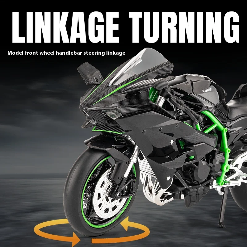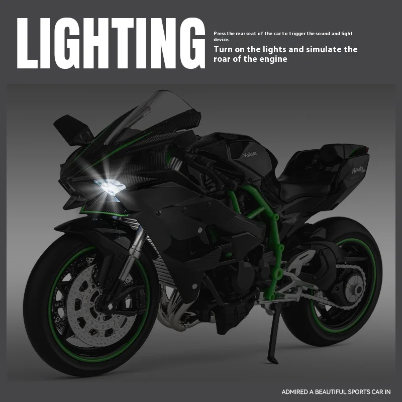 Elevate your car's interior with this stunning Ninja H2R motorcycle model. Crafted with meticulous attention to detail, this model features a sleek black body coupled with brilliant green accents that will surely catch the eye of any motorcycle enthusiast. Constructed from high-quality zinc alloy, its glossy finish and intricate designs are not just visual treats but also ensure durability. Imagine this captivating decoration gracing your car center console, radiating elegance and high-adrenaline vibes. It's not just a model; it's a statement piece that transforms your driving experience into something extraordinary.