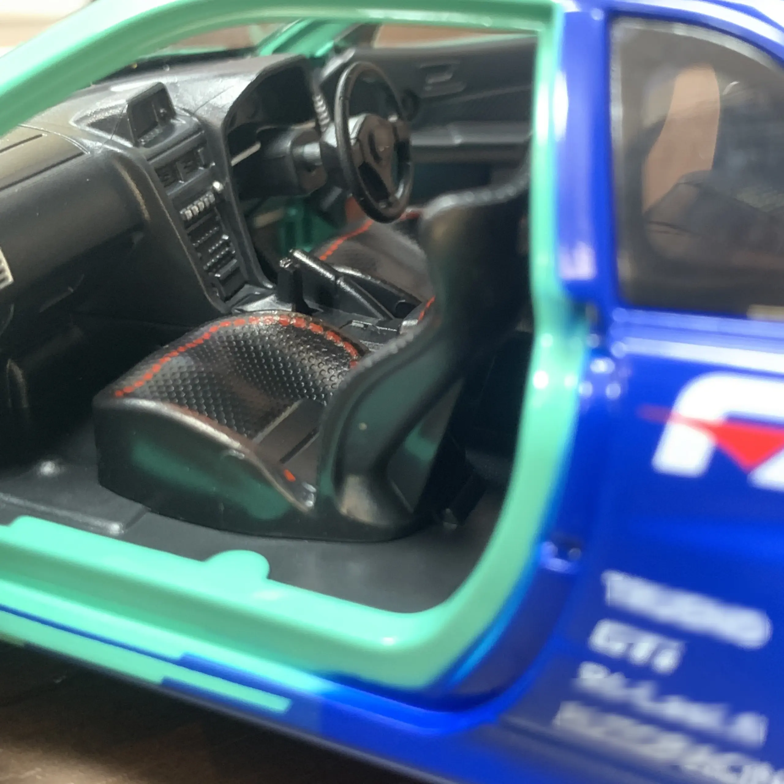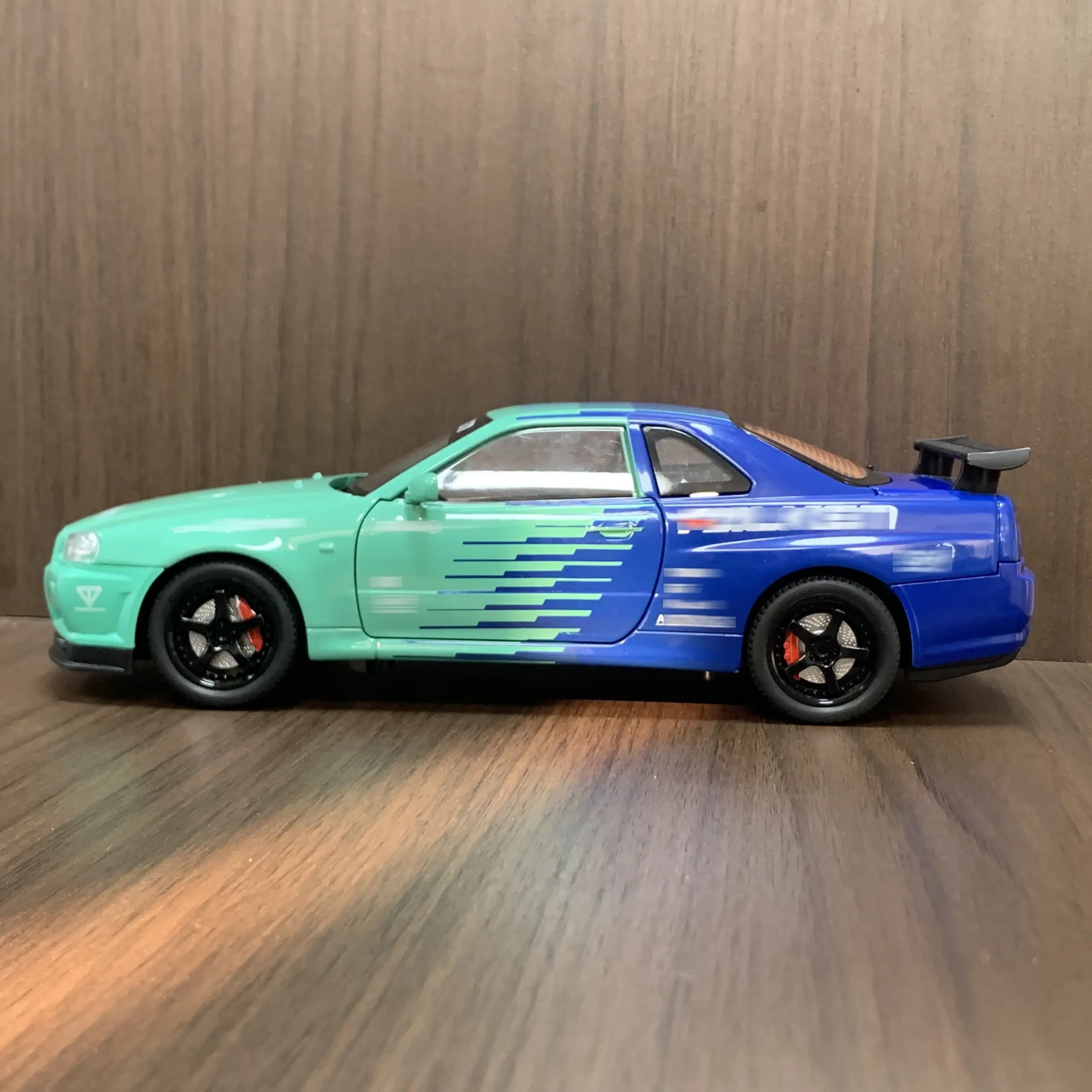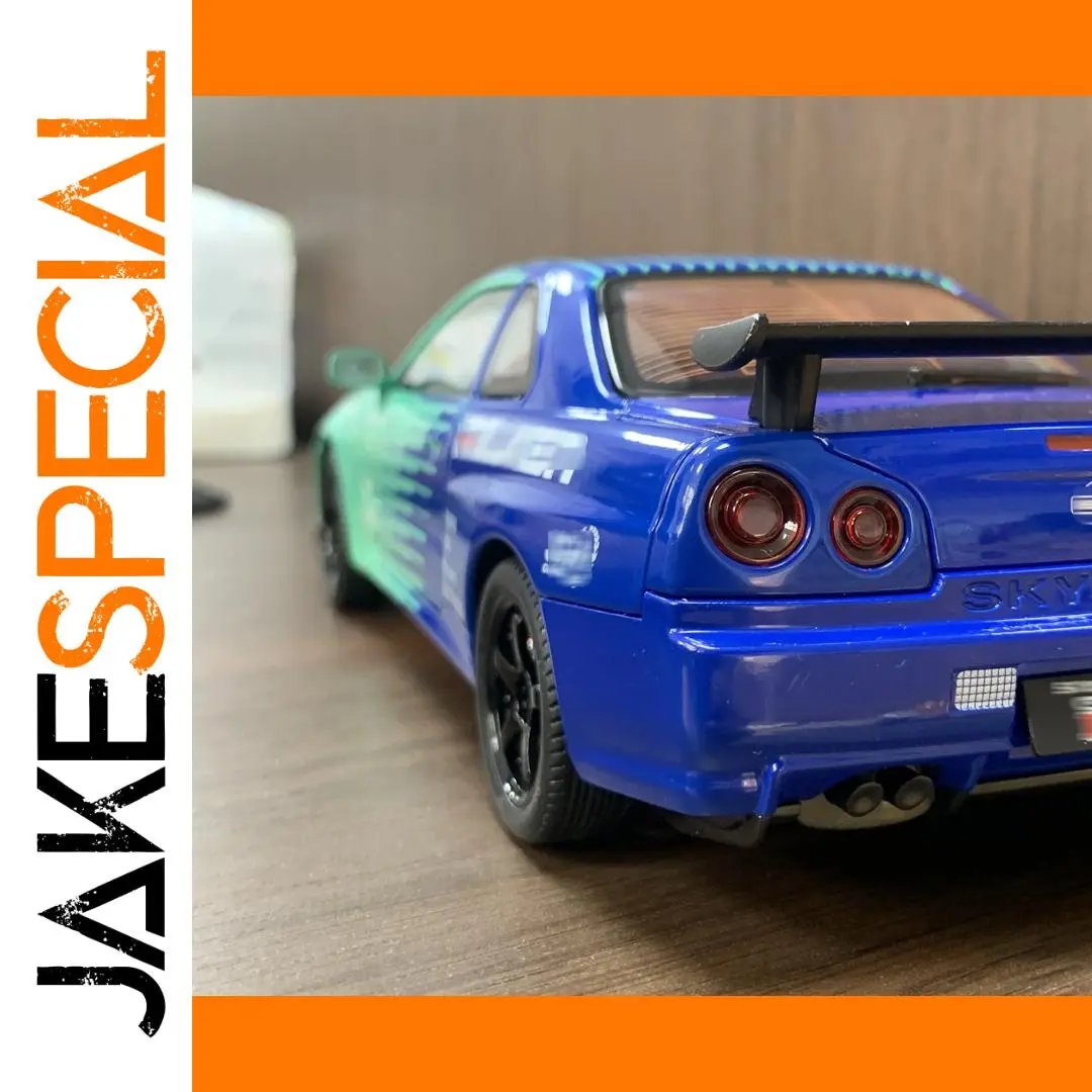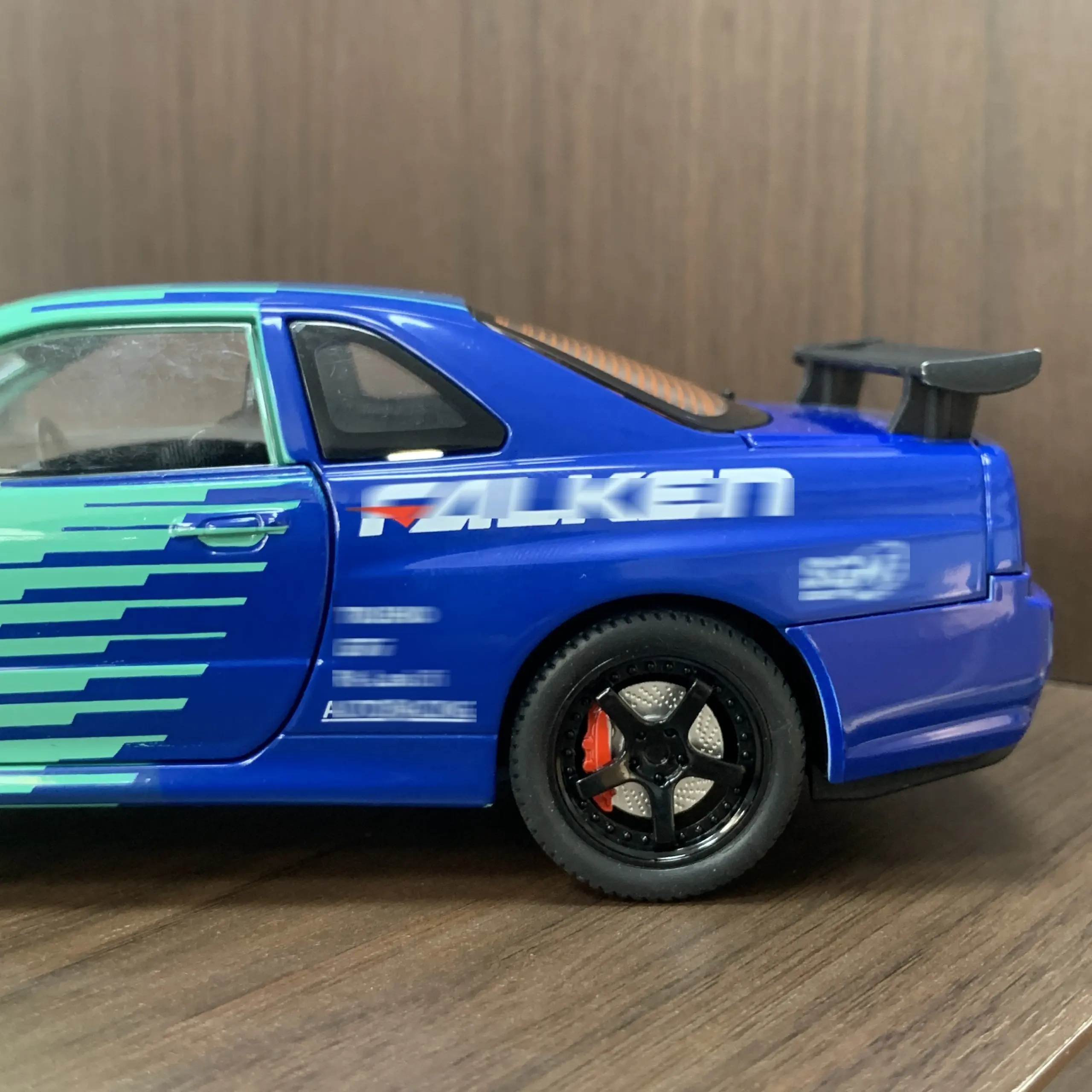 - Vibrant glossy blue finish mimics the iconic Nissan GT-R exterior, highlighting its sleek lines and aerodynamic contours.