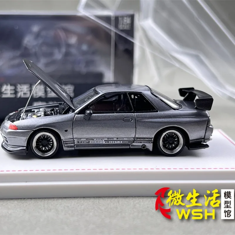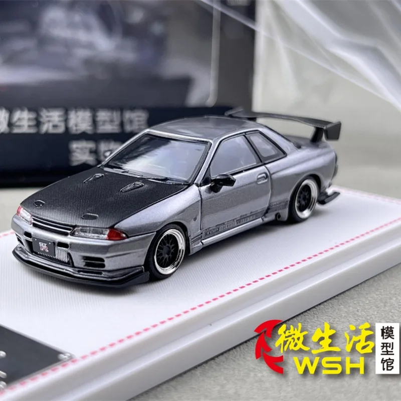 Experience the exquisite realism of this 1:64 scale die-cast alloy Nissan GT-R R32 model, approximately 7 cm long, perfect for adult collectors and enthusiasts. Featuring a sleek, modern design with a metallic silver finish, it showcases detailed body lines, realistic headlights, a subtle grille, and a carefully crafted rear spoiler mounted on supports. The black tires, silver multi-spoke rims, fine surface texturing, and handcrafted details reflect high-quality craftsmanship. Suitable for decoration or display, this non-electric, CE-certified model is available in two color options—A and B—and is designed for mature audiences who appreciate meticulous detailing and premium quality.