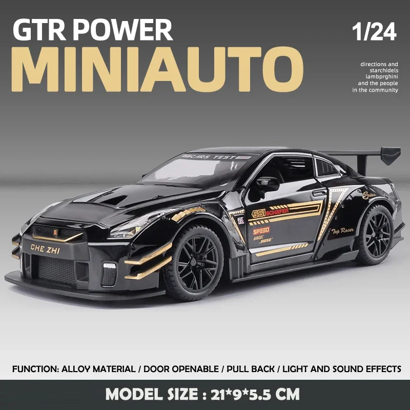 - Impressive 1:24 scale accurately represents the Nissan GTR.
