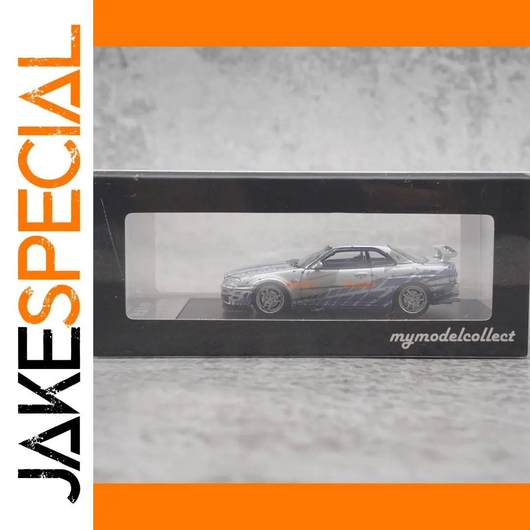 Imagine showcasing this stunning Nissan GTR R34 diecast model, which captures the essence of this legendary sports car in a compact 1:64 scale. Crafted with meticulous attention to detail, the model features a sleek metallic grey finish with vibrant orange “GTR” decals that accentuate its sporty character. The realistic bodywork, including crisp lines and contours, combined with detailed rims and textured rubber tires, makes it an impressive display piece. Encased in a sealed black display box with a transparent front window, this collectible offers a sophisticated look that perfectly highlights its craftsmanship. Designed for adult collectors, it’s the ideal addition to your collection or display shelf, bringing the excitement of a high-performance car into your space.