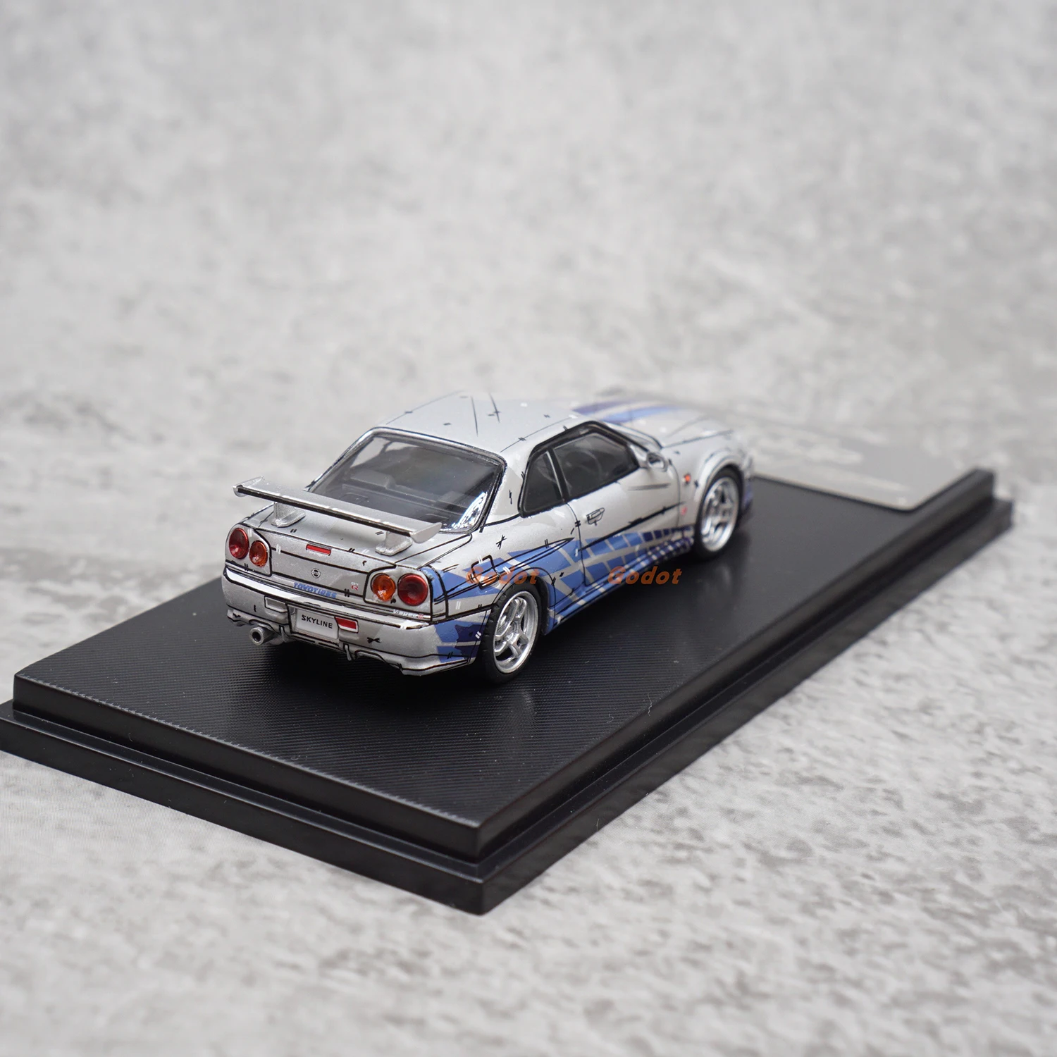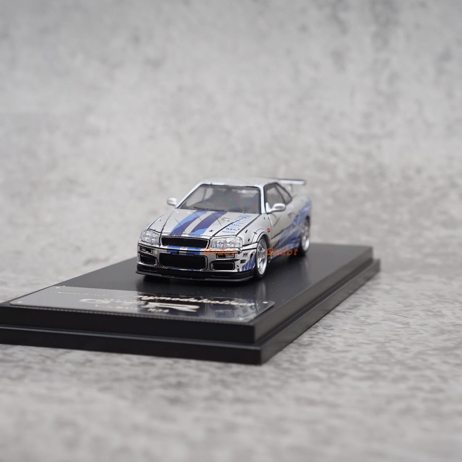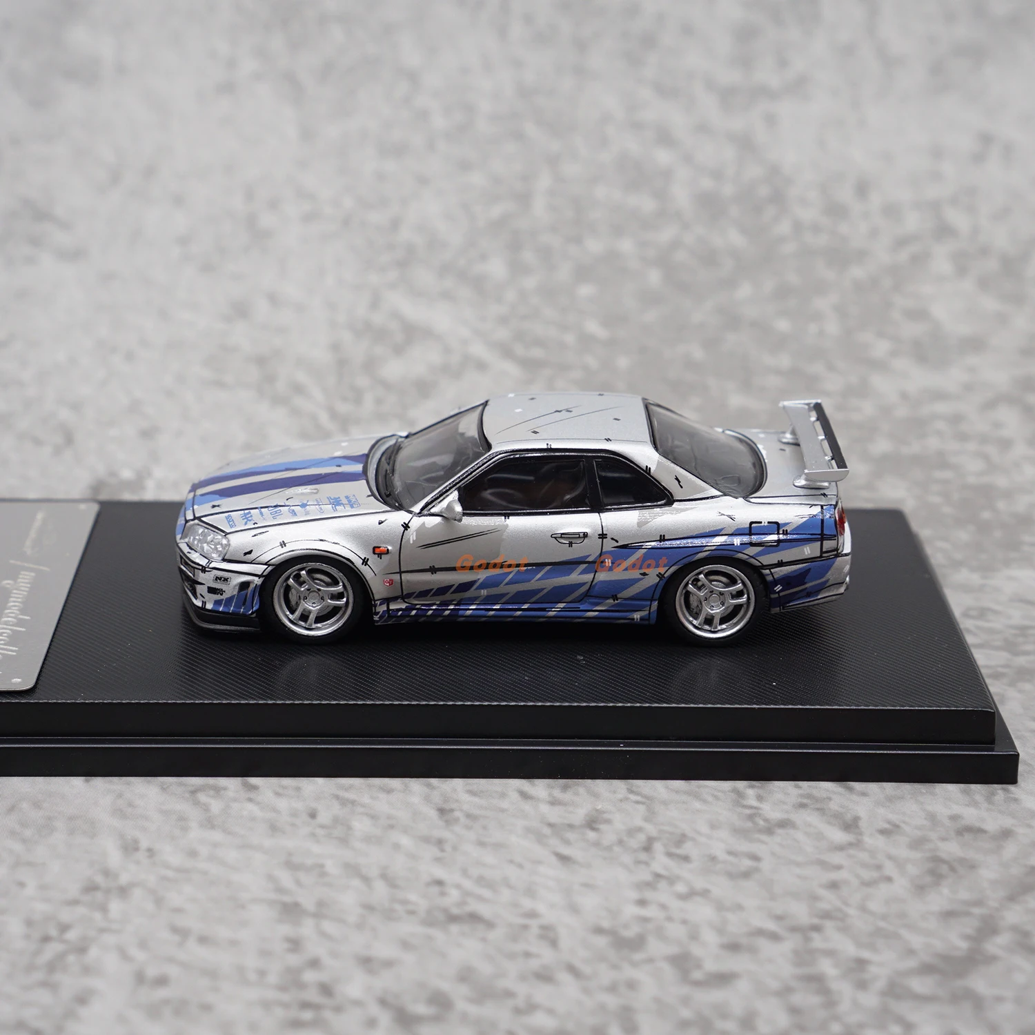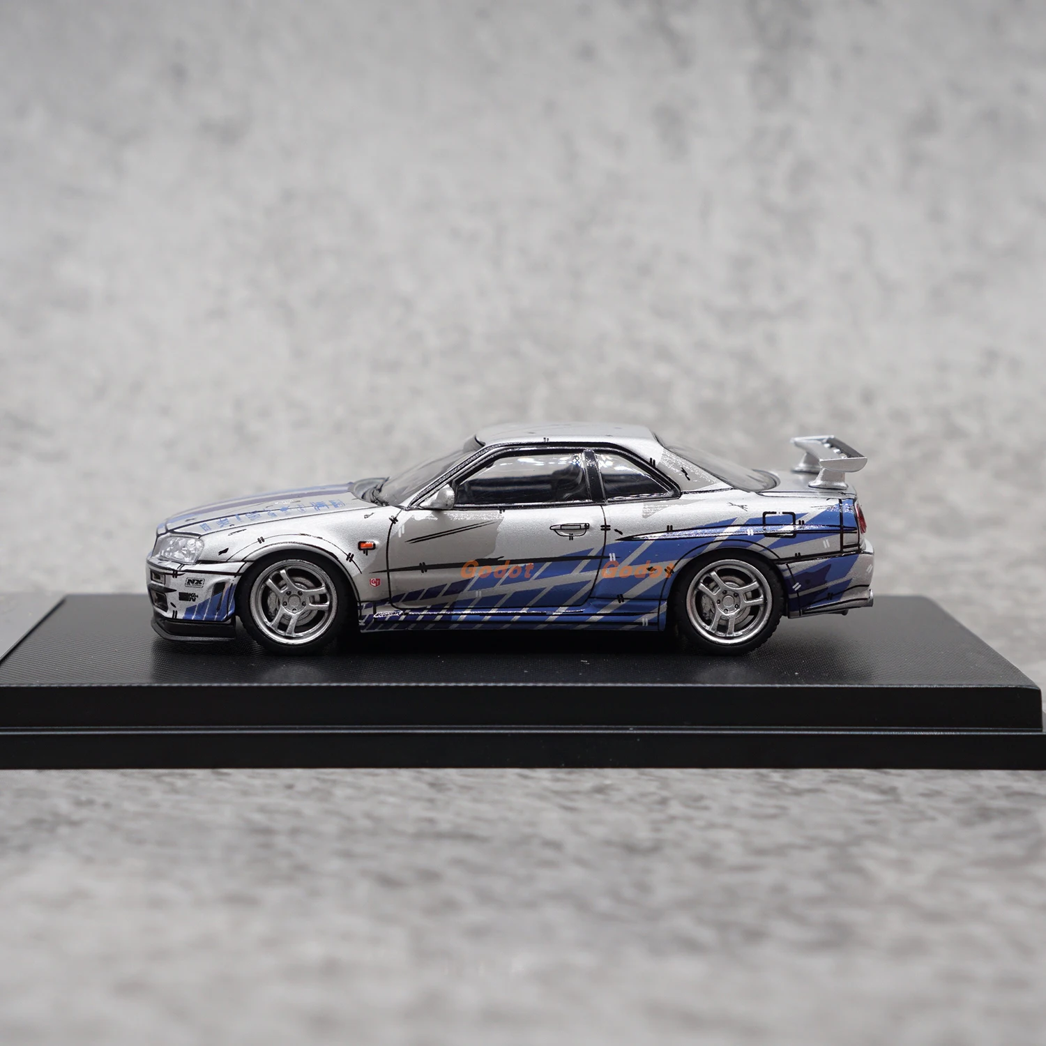 - Dimensions crafted with precision, capturing the aggressive stance and sporty design of the original GTR R34.