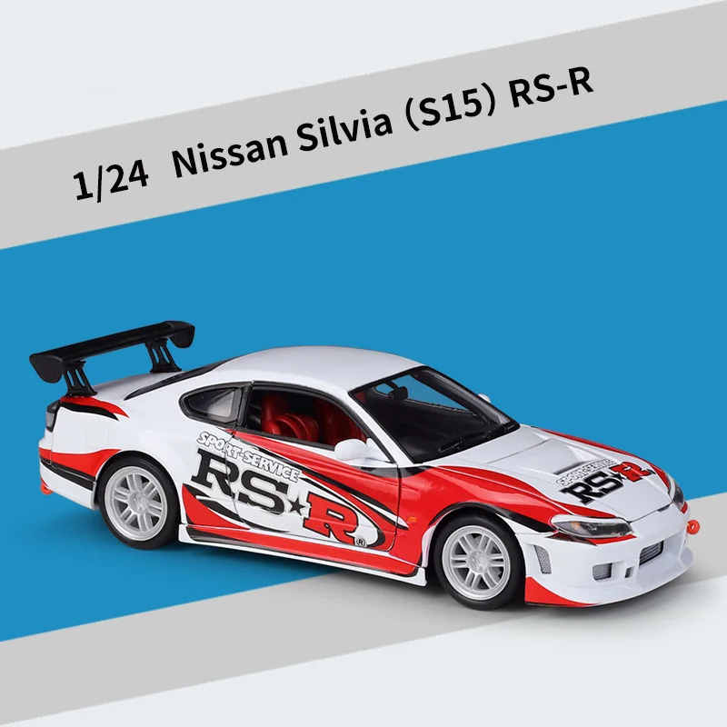 Indulge your passion for automotive excellence with this exquisite 1:24 scale model of the Nissan Silvia S15 RS-R by WELLY. Featuring a captivating color combination of white, red, and black, this diecast model beautifully captures the essence of the iconic car. The primary white body is accentuated with bold graphics and the signature “RS-R” logo, while sporty design elements like a rear spoiler and low-profile front bumper enhance its dynamic appearance. Crafted from high-quality alloy and plastic, every detail, from the wheels to the intricate headlights and taillights, reflects the vehicle’s authentic look, making it a must-have for collectors and enthusiasts alike.