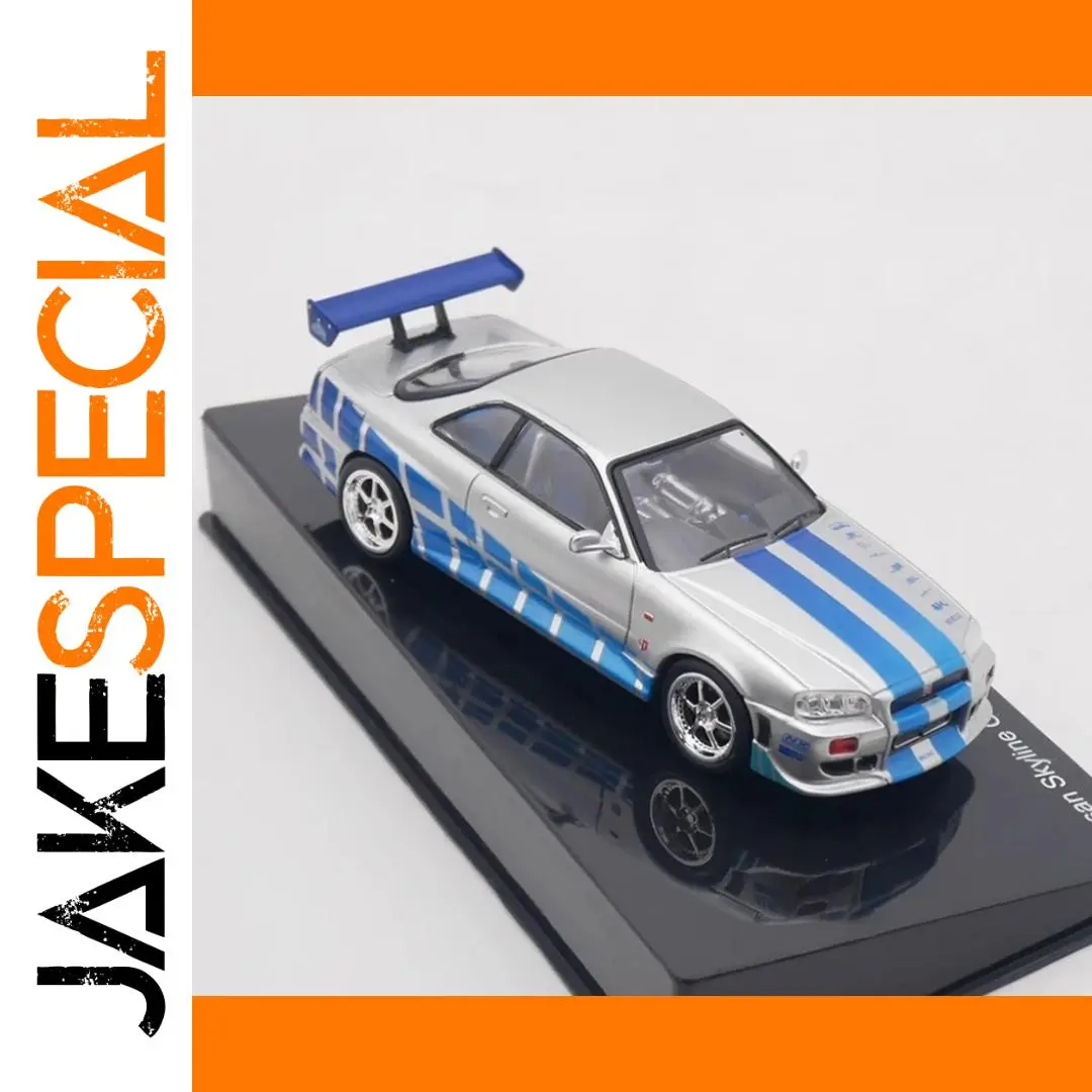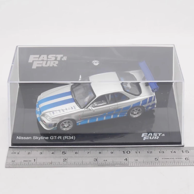 - Produced at a 1:43 scale from alloy and ABS materials for durability and authenticity, measuring approximately 1/43 of the real Skyline GT-R R34.