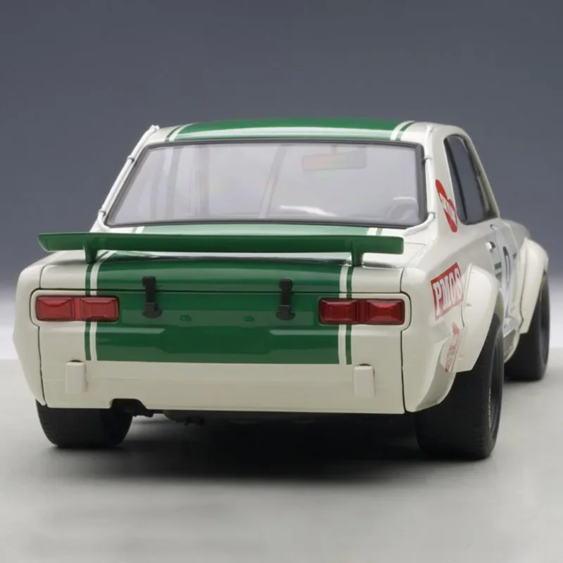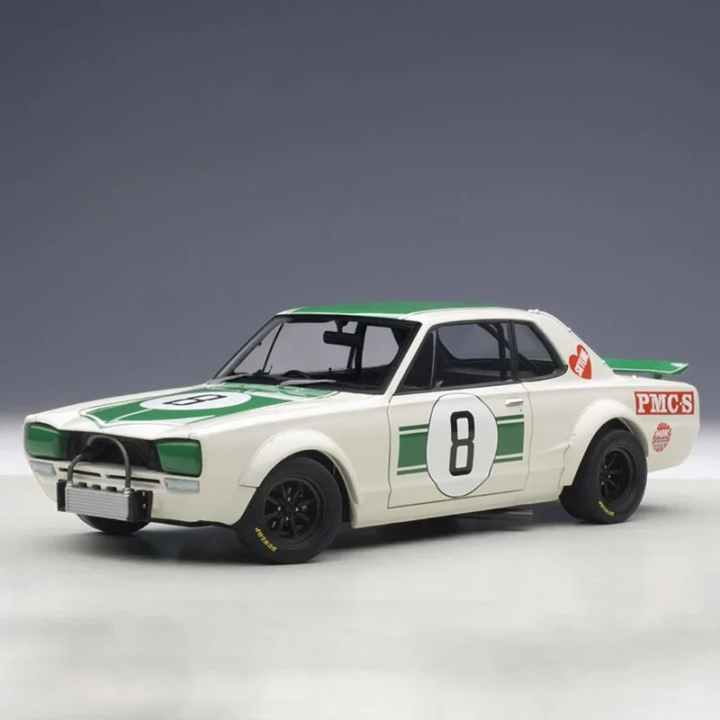 Experience the thrill of owning a highly realistic Nissan Skyline GTR 1:18 scale die-cast alloy model that captures every detail of the iconic sports car. With its smooth, glossy white finish complemented by vivid green racing stripes, this model exudes sporty elegance. The bold black numbering on the doors adds a race-inspired touch, while the transparent windows reveal a meticulously crafted interior. The model features functional front and rear hoods, opening doors, and freely rotating wheels, allowing for an engaging display. Made from durable alloy, rubber, and ABS, it offers a solid, premium feel. Its compact size of 25 x 10 cm makes it a perfect addition to any collection or display shelf, showcasing craftsmanship and racing style simultaneously.