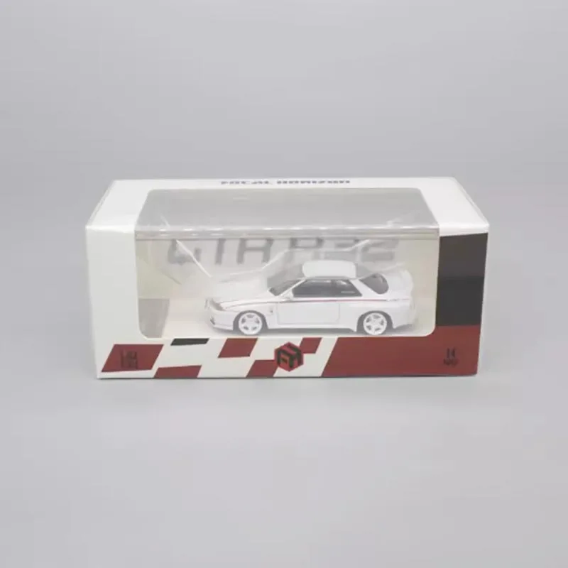 Experience the thrill of owning a meticulously crafted 1/64 scale model of the iconic Nissan Skyline R32 Nismo S-Tune. Finished in glossy white, this sleek diecast car captures every detail of the original vehicle, from the smooth hood and black grille accents to the striking red pinstripe along the side. The realistic clear headlights, tinted windows, and white multi-spoke wheels add to its authentic appearance. The prominent rear wing spoiler emphasizes its racing heritage, making it a stunning display piece for collectors. Crafted from alloys and plastics, this model exudes a refined, high-quality finish perfect for enthusiasts who appreciate accurate detailing and aesthetic excellence.