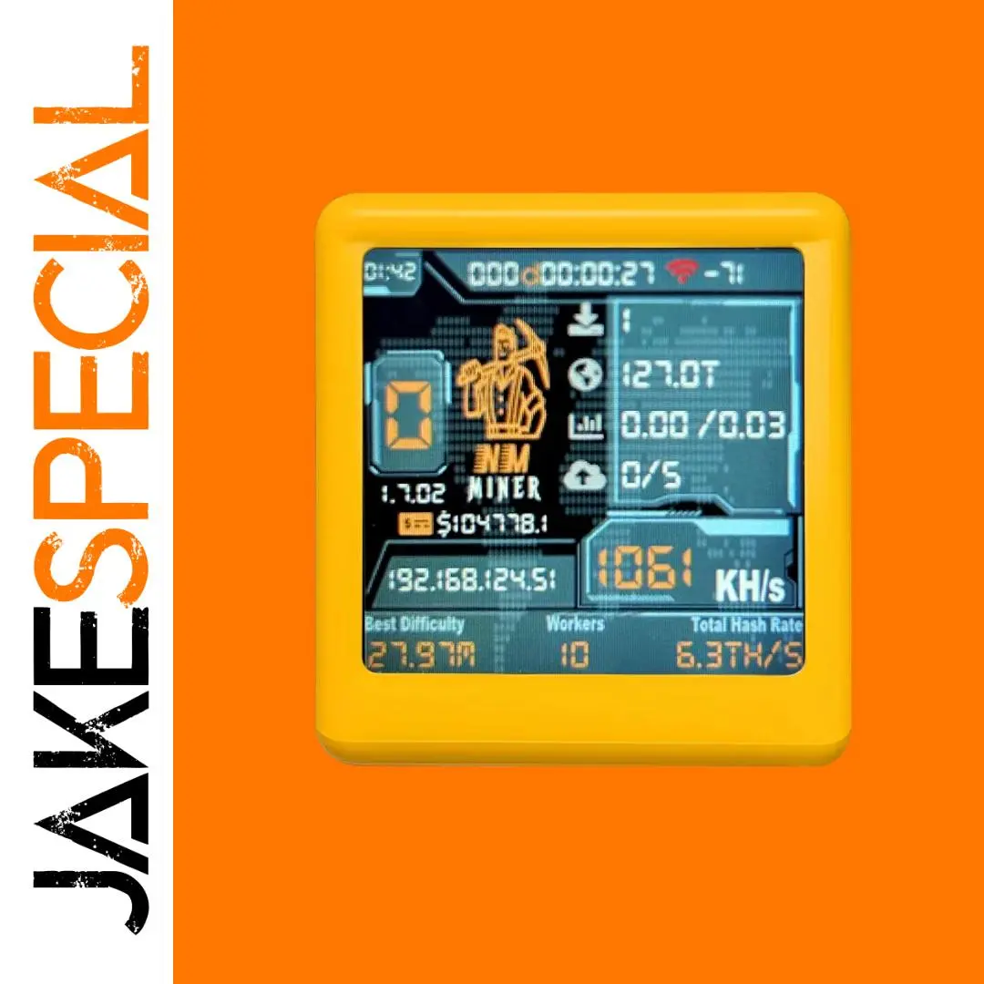 Discover the innovative design of this NMMiner Smart TV, perfectly crafted for a seamless mining experience. Its vibrant yellow casing offers an energetic, eye-catching look, complemented by a sleek rectangular shape with smooth rounded edges that convey a modern aesthetic. The 1.54-inch colorful TFT display dominates the front, showcasing detailed mining statistics, graphical icons, and animated elements that enhance usability and visual appeal. Thanks to the integrated ESP32 dual-core 32-bit MCU running at 240MHz and 520KB SRAM, this device delivers impressive performance—achieving a hash rate of 1060 KH/s, which significantly boosts your chances of winning the lottery. Its compact, portable form factor allows you to effortlessly monitor your mining activity anytime, anywhere, making it a reliable, stylish addition to your digital workspace or home setup.