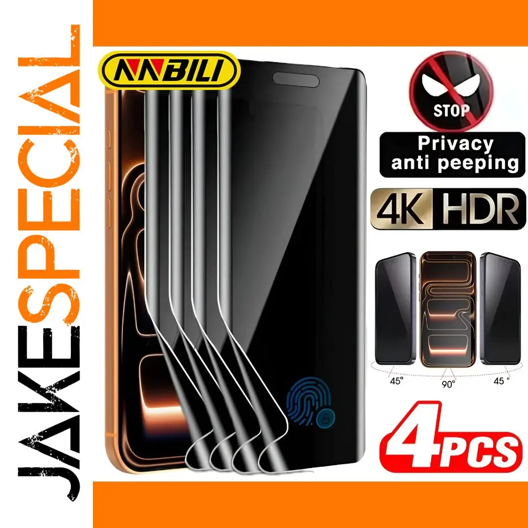 Experience ultimate privacy and clarity with this set of four NNBILI anti-spy hydrogel screen protectors, designed for a broad range of iPhone models including the latest series and classic favorites. These protectors blend sleek aesthetics with advanced protection, offering a transparent, flexible fit that seamlessly enhances your device’s visual appeal. Whether at work or on the go, you can enjoy clear viewing while keeping prying eyes away, thanks to the privacy anti-peeping feature. The protectors also guard against fingerprints, scratches, shattering, and unintended damage—all without harmful chemicals. Elevate your device’s security and style, knowing you have reliable, high-quality protection that complements your sophisticated smartphone.