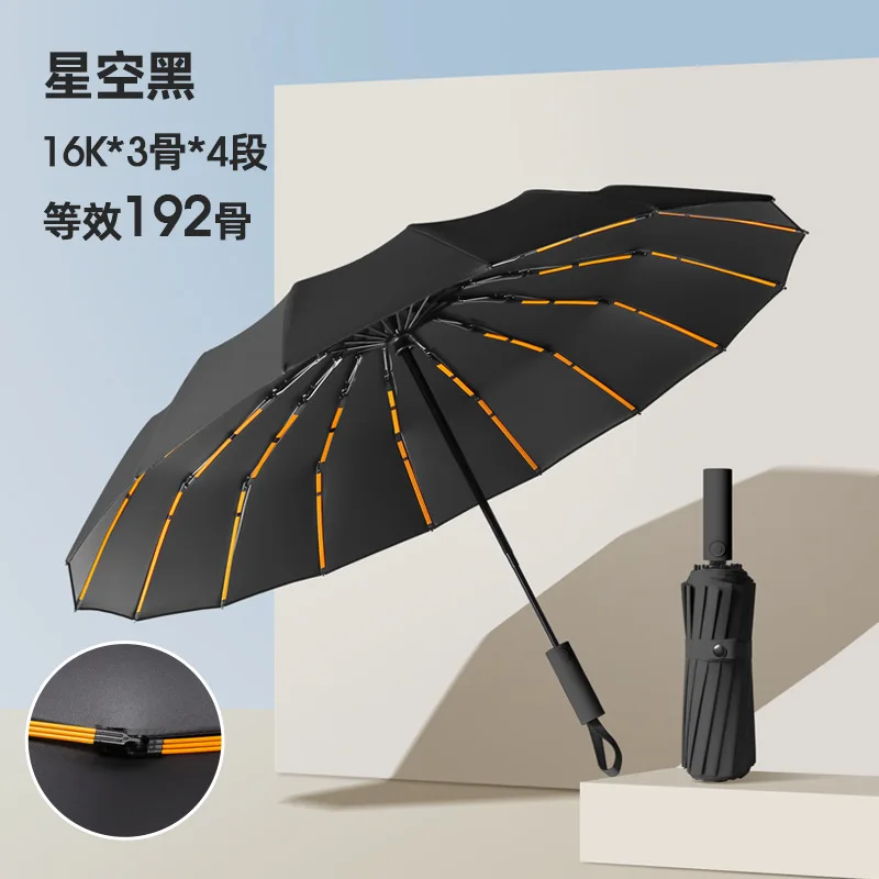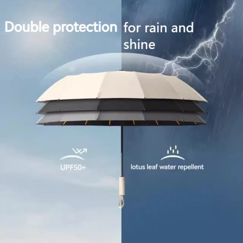 Experience reliable protection with this reinforced, ultra-strong windproof automatic fold umbrella, designed for adults. Crafted from durable polyester with a black coated panel, it offers excellent waterproofing and UV sunshade, keeping you comfortable in any weather. Its semi-automatic control makes opening and closing effortless, while the large, three-fold design provides extensive coverage. Whether facing rainstorms or bright sunshine, this umbrella’s anti-storm features and robust construction ensure durability and dependability. Elevate your daily weather protection with this premium umbrella, perfect for those who value style, strength, and reliability in unpredictable conditions.