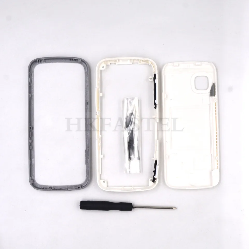 Transform your device with this sleek replacement housing set, designed specifically for the Nokia 5230. Crafted in durable white plastic, the set includes a front housing, middle cover, and rear door cover, all featuring a modern bar style for an elegant appearance. The metallic silver frame adds a subtle refined touch, complementing the minimalist design. Perfect for repairing or replacing cracked, broken, or damaged housing components, this set restores your phone to its original look and functionality. Easy to assemble for those with technical skills, it offers a reliable solution for extending your device's lifespan. Feel confident in your repair project with high-quality parts tailored for durability and style.