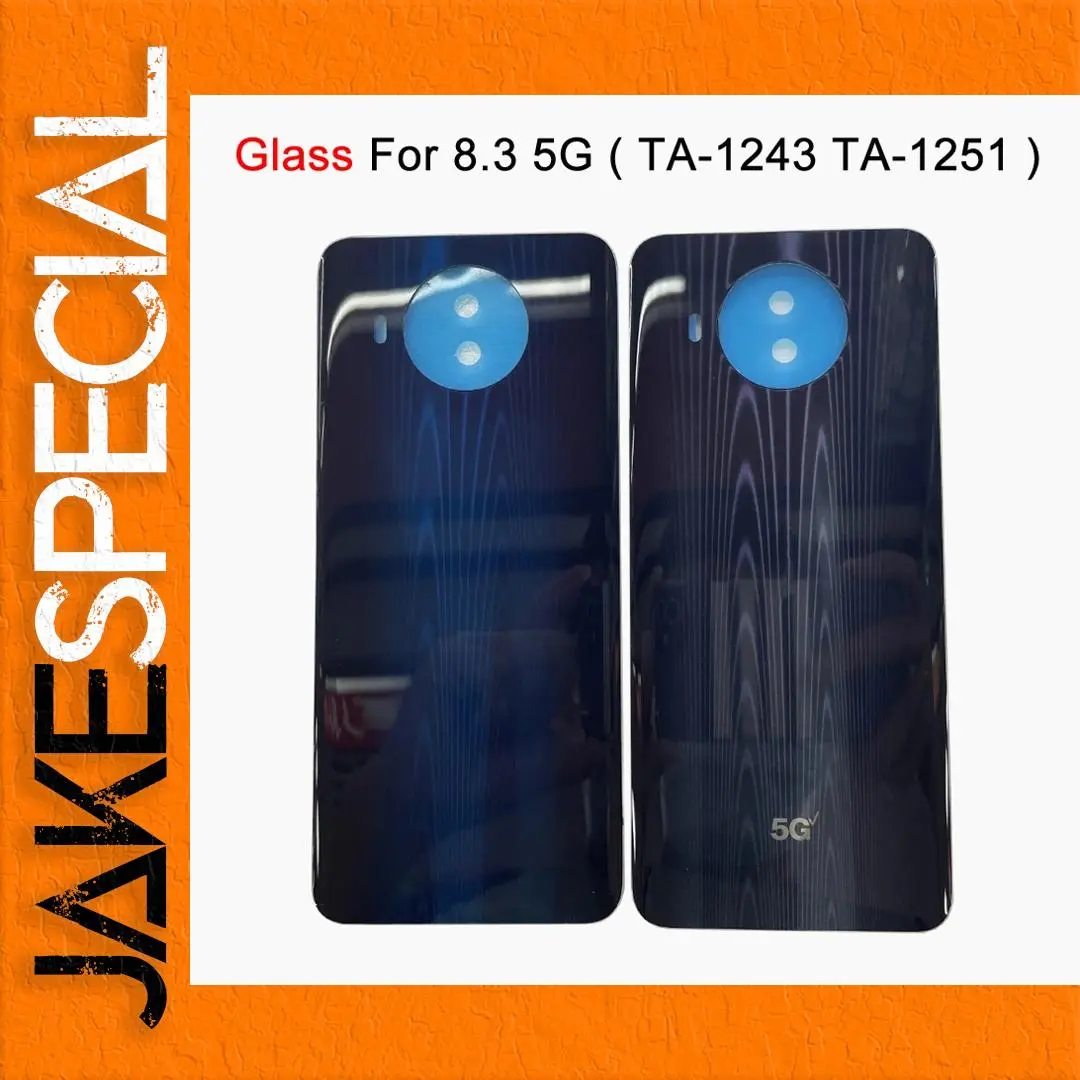 Enhance your Nokia 8.3 5G with this Replacement Battery Door Housing Back Glass Cover Case, compatible with models TA-1243 and TA-1251. Crafted from durable glass, this cover comes in a sophisticated dark blue color with a glossy finish. The design includes fine linear patterns that offer a textured aesthetic, while precise cutouts provide accessibility for the camera and lens. Notably, the right cover features “5G” elegantly printed in a metallic hue, underscoring its premium feel. Experience functionality and style as you rejuvenate your device with this high-quality replacement cover.